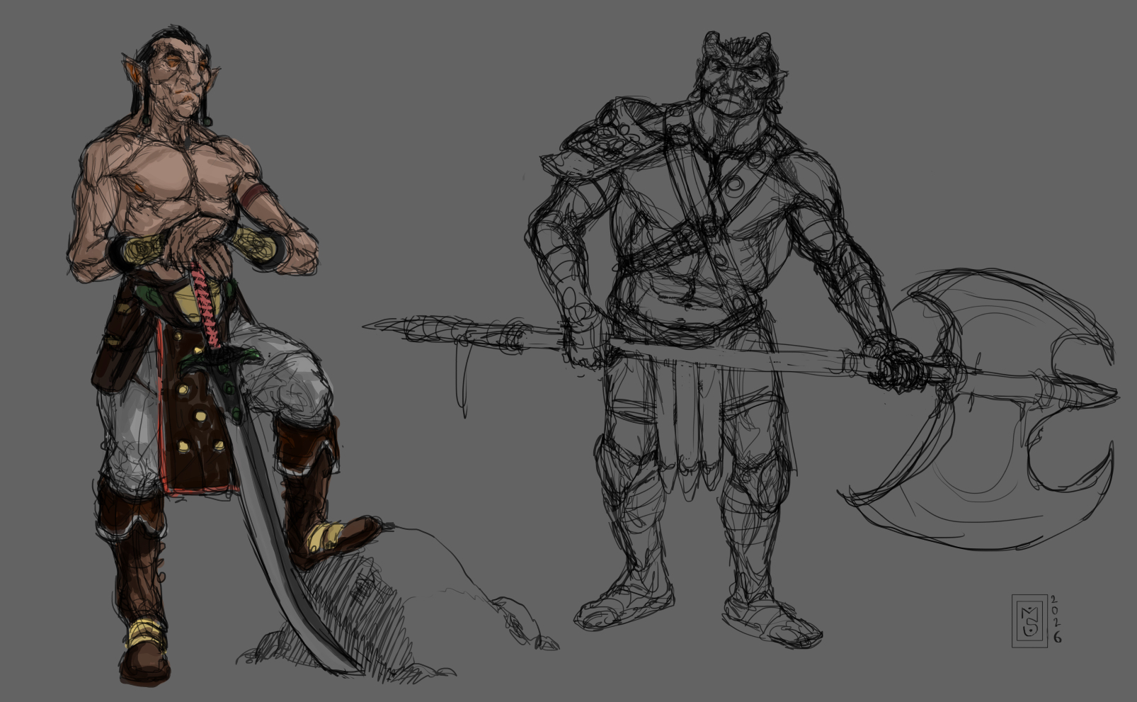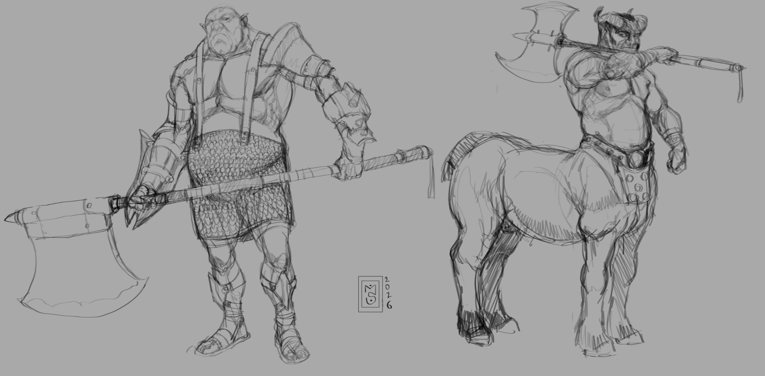 J’ai tenté pas mal de croquis pour finalement me rendre compte que je devrais faire quelques essais de simulation 3D ne serait-ce que pour avoir des personnages bien proportionnés..;