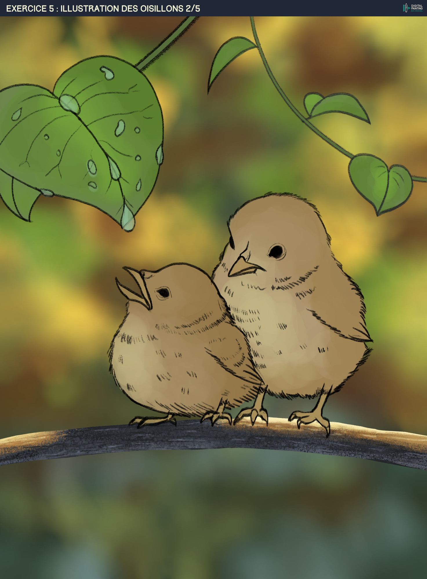 Et l'étape 2 des petits oisillons trop choupi! J'ai un peu galéré sur les pattes, je pense repasser dessus durant les prochaines étapes ! Exercice 5 :