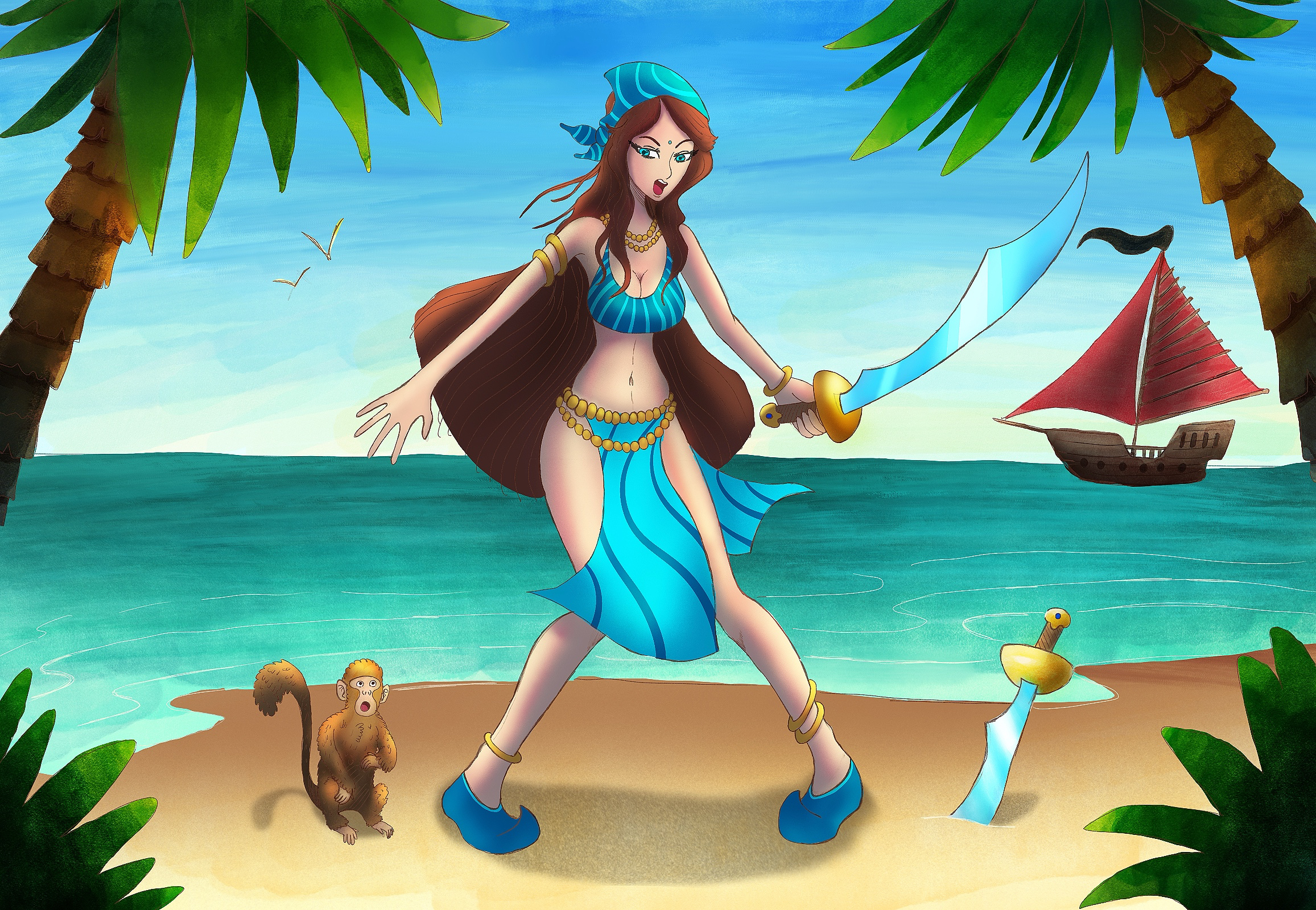 13. Ah depuis le temps que je te pousse à la faire je suis content que tu aies passé le cap du post ! Je préfère ton personnage sans chemise (ça t'arrange non ?). Pour qu'il fasse plus pirate je lui mettrai un couteau où quelque chose comme ça. Pour ta première participation et tes premiers dessins tu as raison de poster tes recherches et tu verras il y a beaucoup d'entraide ici n'est-ce pas @Spartan de DPS
