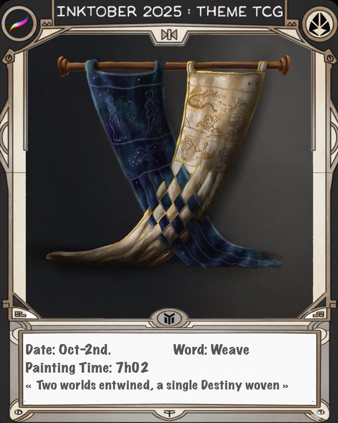 Salut, très sympa vos propositions ! @Orelj'aime bien ton concept, c'est très graphique Voilà ma participation pour aujourd'hui ! C'était l'occasion d'en apprendre plus sur les concepts autour du métier à tisser mine de rien ^^