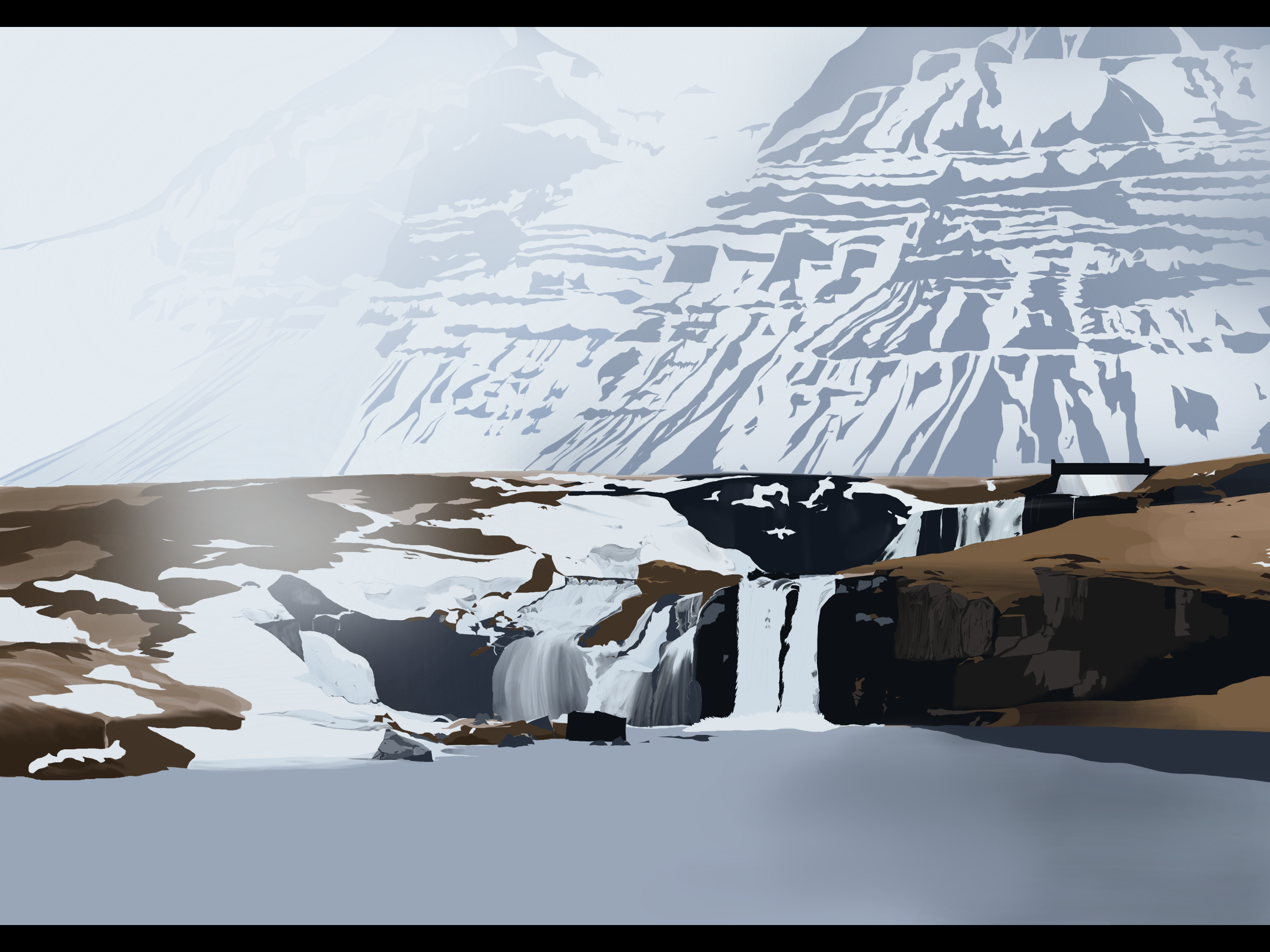 Hey @Melineko Moi je le trouve plutôt correct ton rendu , certe c'est pas parfait mais c'est loin d'être moche et puis ce n'est pas le but de l'exercice ici c'est surtout de t'entraîner 😉 tu t'en ai bien sorti pour la synthétisation des forme globale et couleurs 😉 -juste ici fais attention tu a des délimitation trop prononcées et visibles -ici et la ta roche devrait être bcp plus foncée -cette sur partie ta roche devrait bcp plus être dans des teinte bleutée ett l'ensemble estompé dans le brouillard de la neige ces deux parties d'herbe sur ta roche ici sont encore trop claires pour le moment -pour l'eau je voit ce que tu as voulu faire mais essaye d'imaginer ces formes de vagues plus foncées plus comme des formes horizontales et très écrasées qui suivent la perspective de l'eau 😉 -il te manque un petit brouillard ici a ce niveau également voila j'espère que ça t'aidera courage !;) continue comme ça