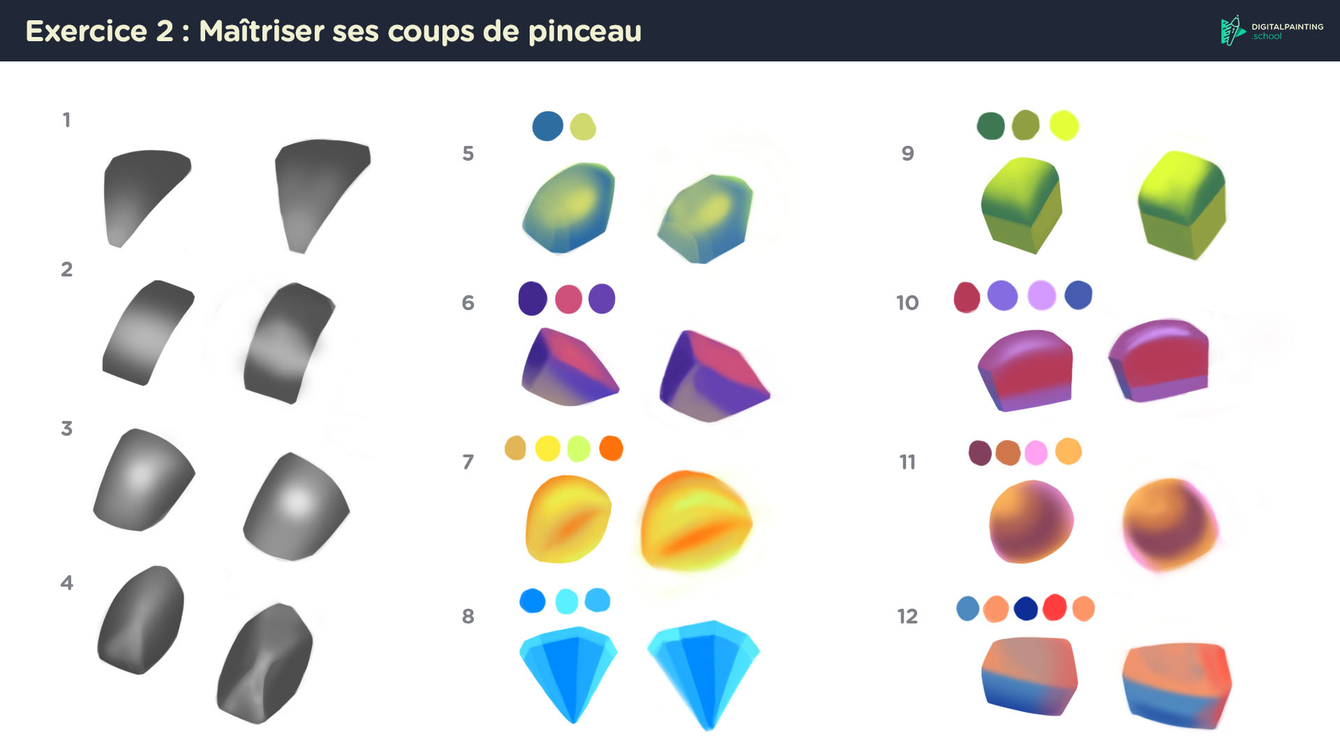 Re bonjour tout le monde ! Après environ 3-4h de travail j'ai enfin réussi à finir le deuxième exercice. Alors petit soucis principalement sur les deux dernières formes, je n'ai pas su comment avoir un effet de flou aussi présent que dans les exemples. Sachant que j'ai utilisé le brunch soft du pack avec 15% de flux pour essayer de m'en rapprocher. Hâte des retours et conseils !