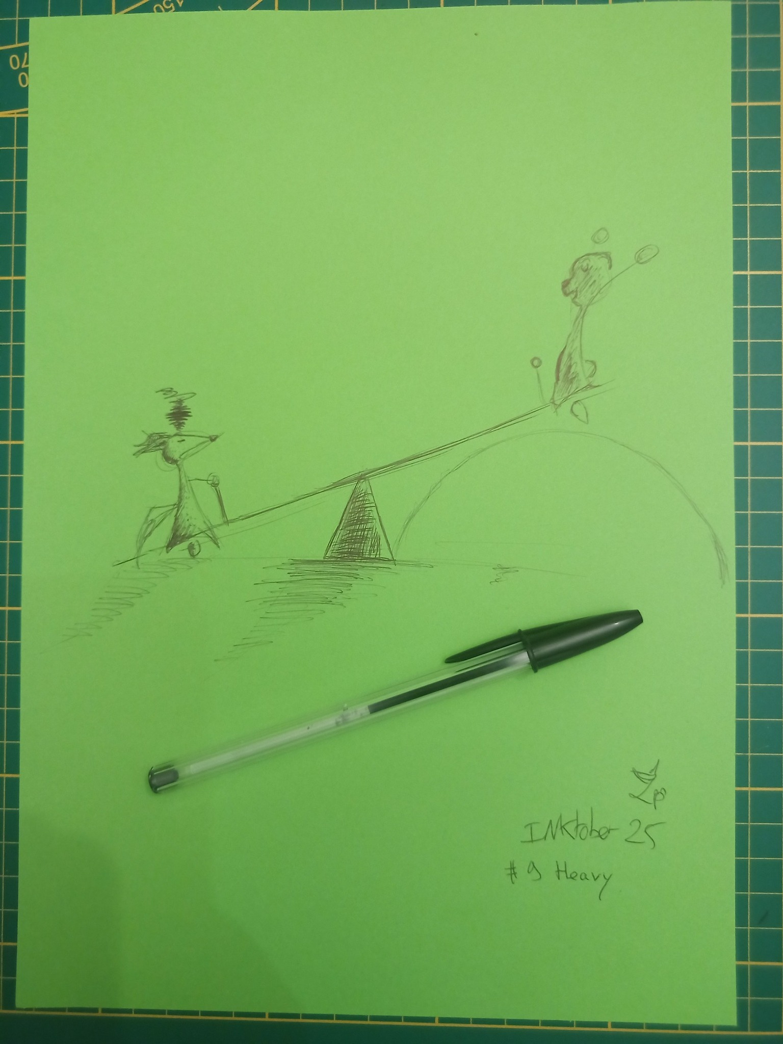 Coucou tout le monde, Je vois qu'il y a pas mal d'inspiration aujourd'hui, vous avez sorti le grand jeu ! @HaeresisTon dessin est magnifique, sans faire de mauvais jeuxde mots, ça envoie du lourd !!!! @BillouSuper encrage, super dessin, j'adore les pirates et celui-ci doit être riche vu le poids du coffre, ou alors c'est du rhum ?! @tolokobanMagnifique rendu, j'aime beaucoup, tu as dû y passer du temps ! De mon côté, je suis complétement crevé, ma fille est malade, donc j'ai pris l'idée rapide que j'avais et fais un croquis, ne regardez pas de trop près