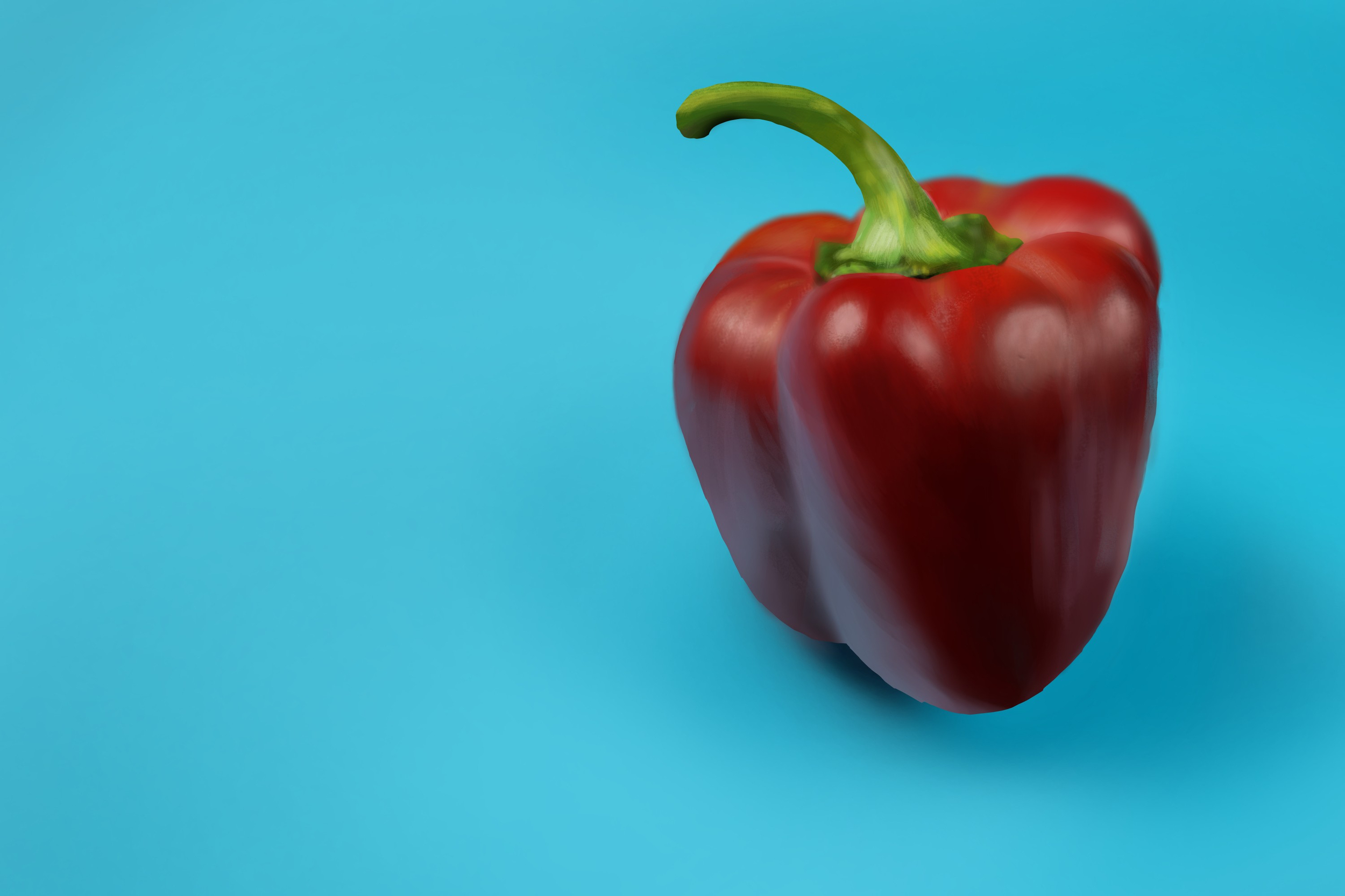 Hey @kuruby yes tu as été un peu timide pour le bleu de la feuille de la rose tu peux le saturer bcp plus 😉 Ton poivron est vraiment good aussi bien joué ! juste : -ici tu peux venir atténuer un peu ton reflet et le rendre dans une teinte un peu gris chaud dans sa teinte -tu peux estomper celui ci aussi un peu plus : - et tu peux venir encore plus flouter ces bosses sur la partie derriere la tige sinon c'est top bravo !continue 😉 -