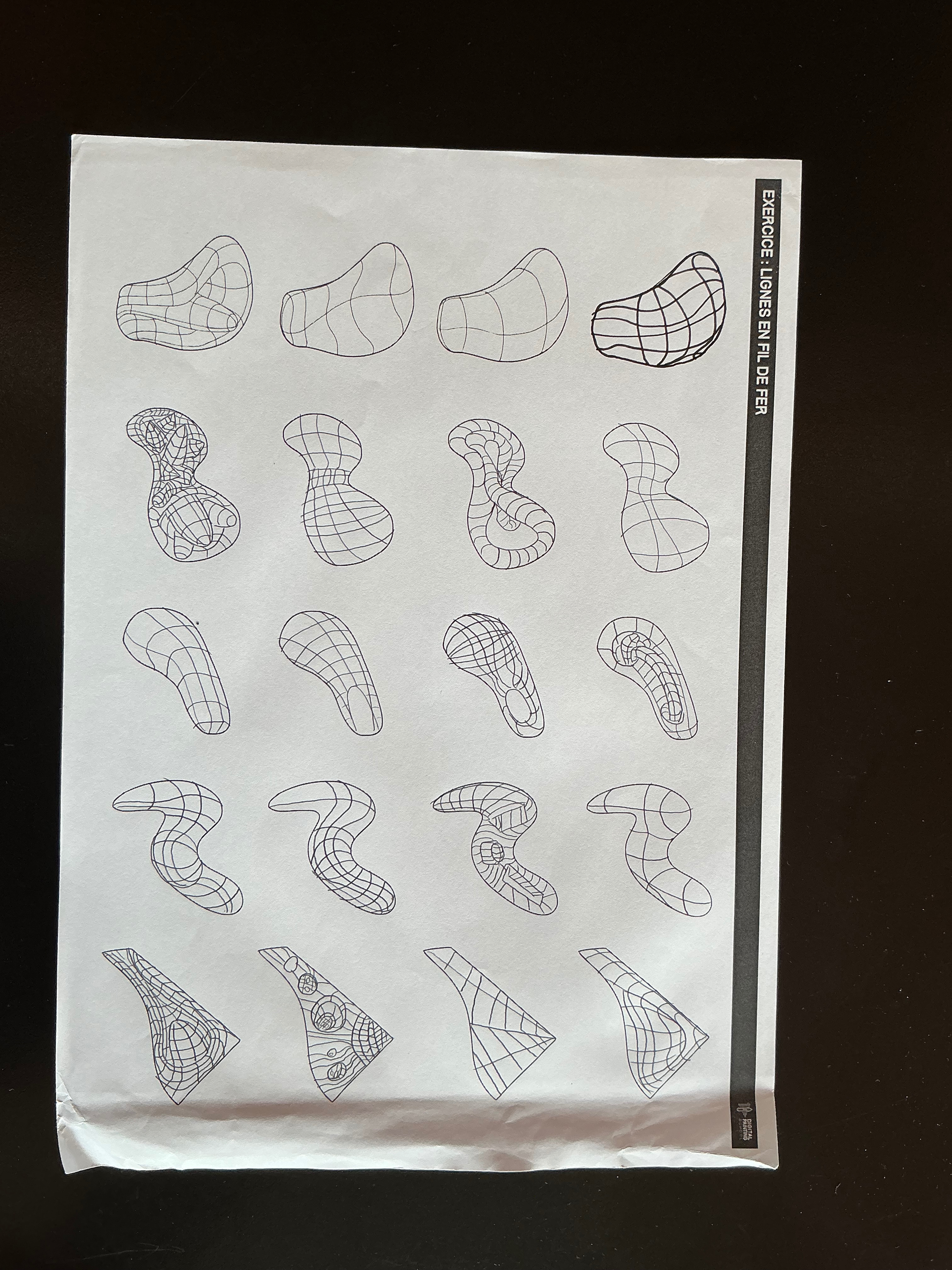 EXERCICE 3 Après une absence prolongée pour divers raisons, j'ai pu enfin terminé la première reproduction de l'exercice 3. J'ai fait tous les gros aplats avant d'aller vers les pus petits puis de travailler un peu le smoothing et poser quelques textures. Je trouve le rendu moche ^^mais dans la pratique, même s'il fallait s'accrocher c'était formateur.