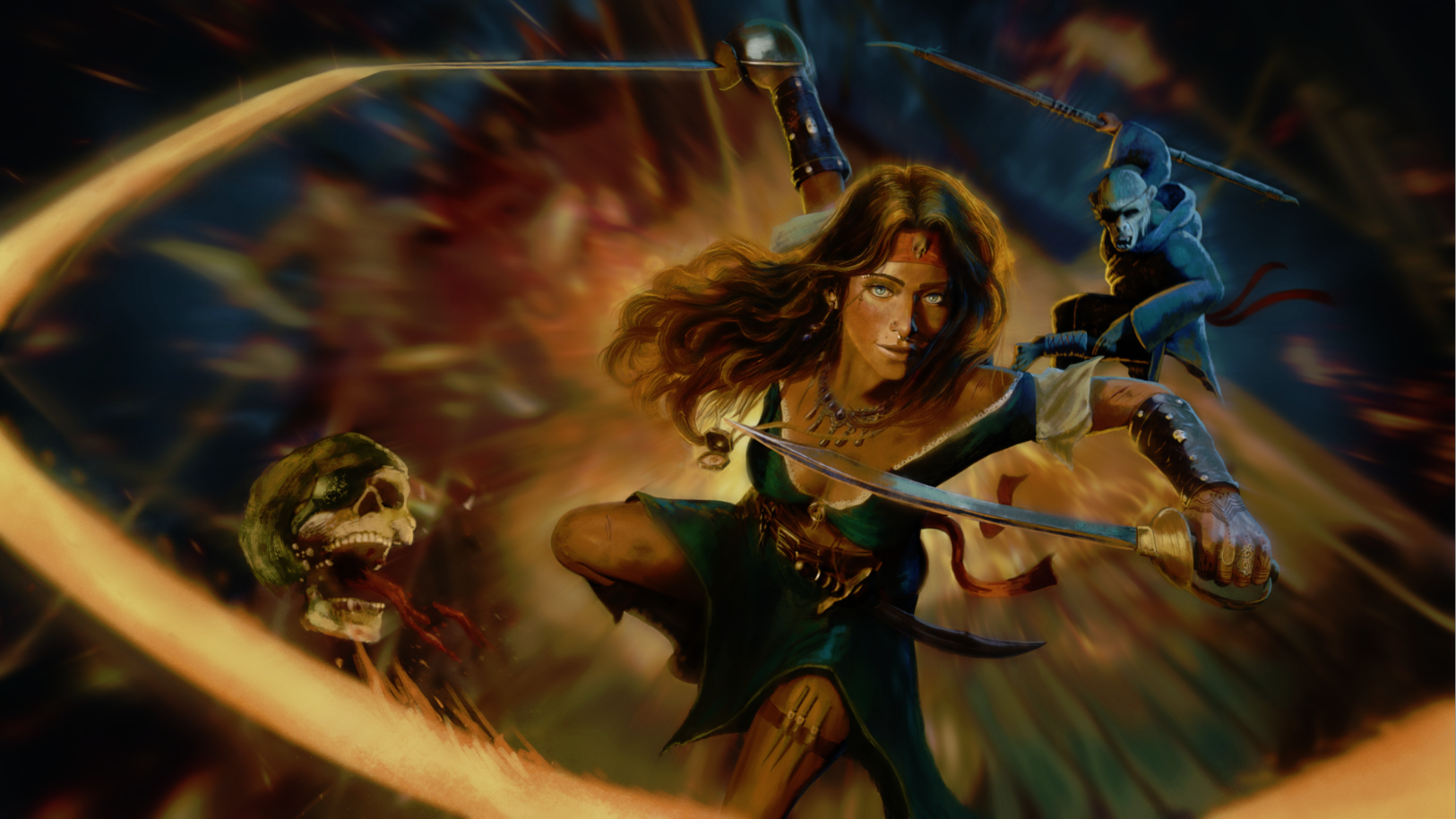 @daff C'est cool d'avoir avancé si vite ! Le proposition de @Rockenrollaest bien, sans le perso derrière. Et la question de @fomw est pertinente. La lame pourrait être plus bleutée. Ou rendre sa robe plus bleue ? -