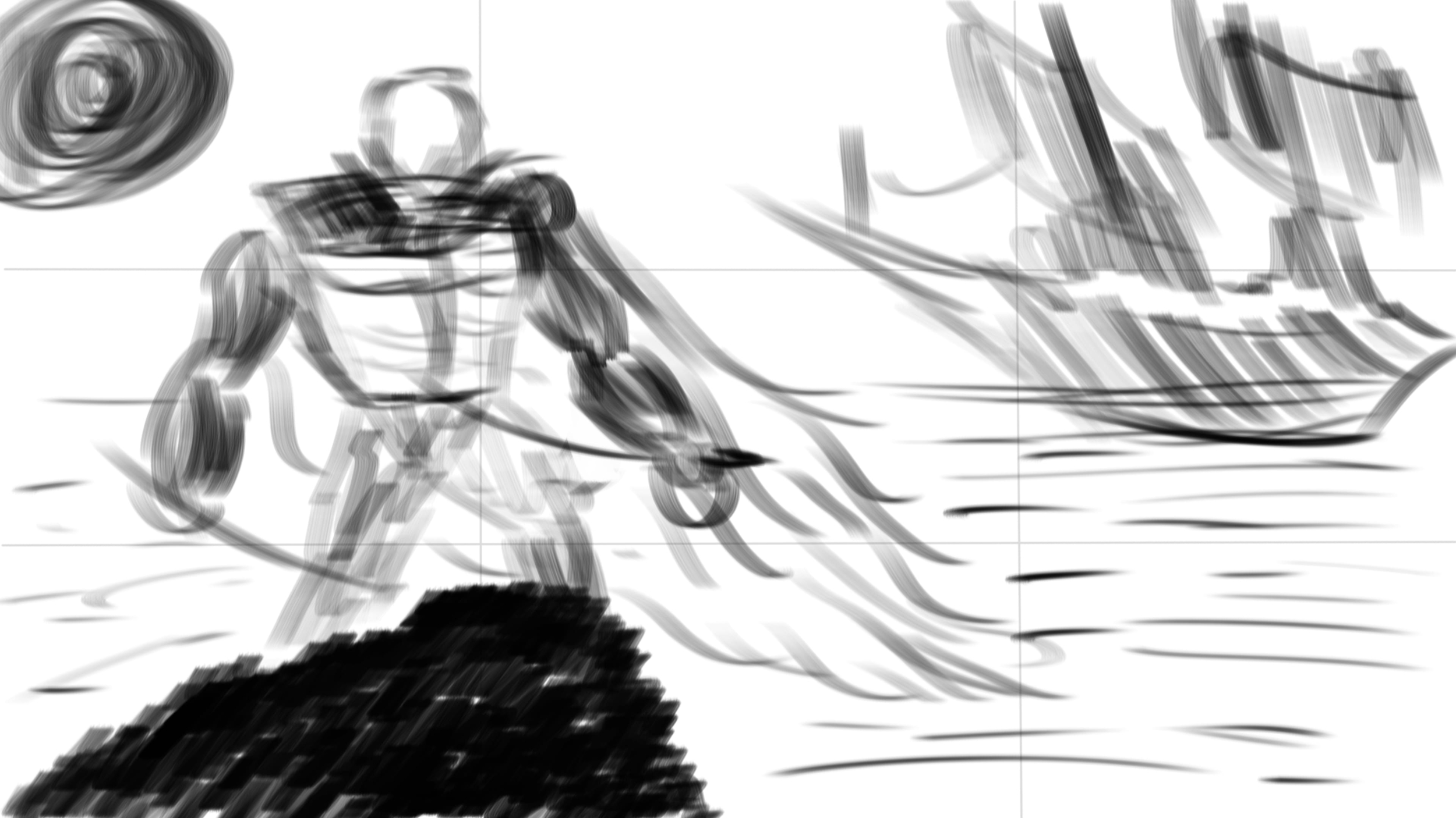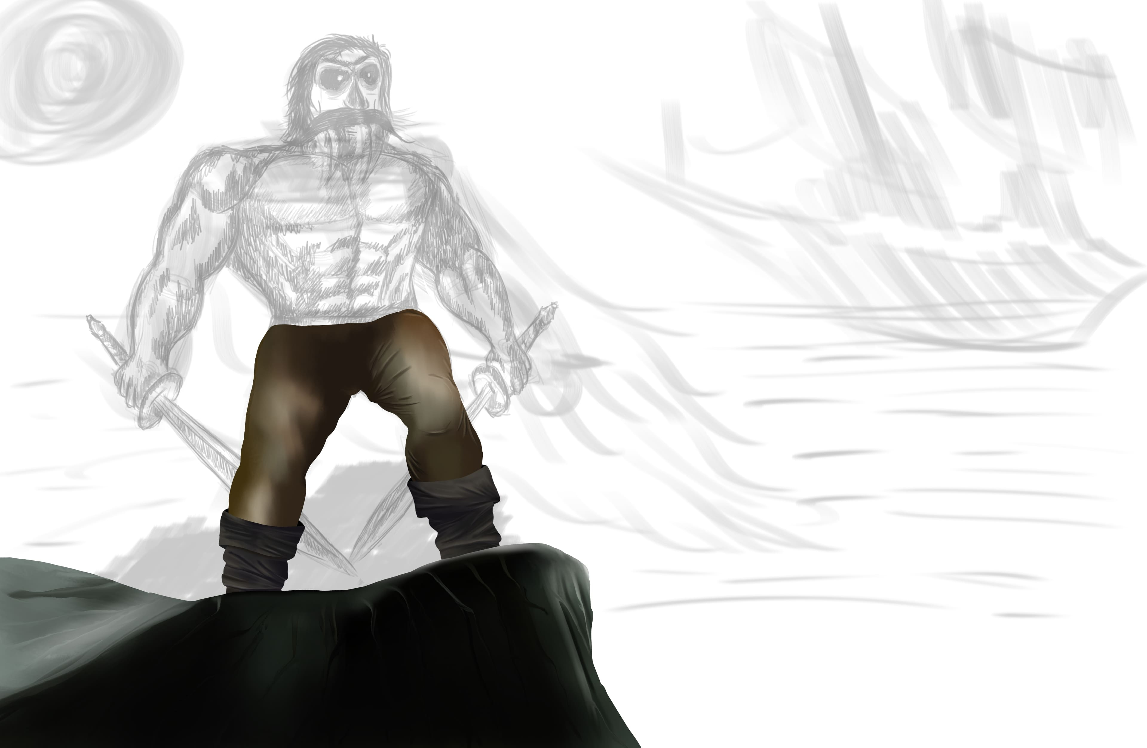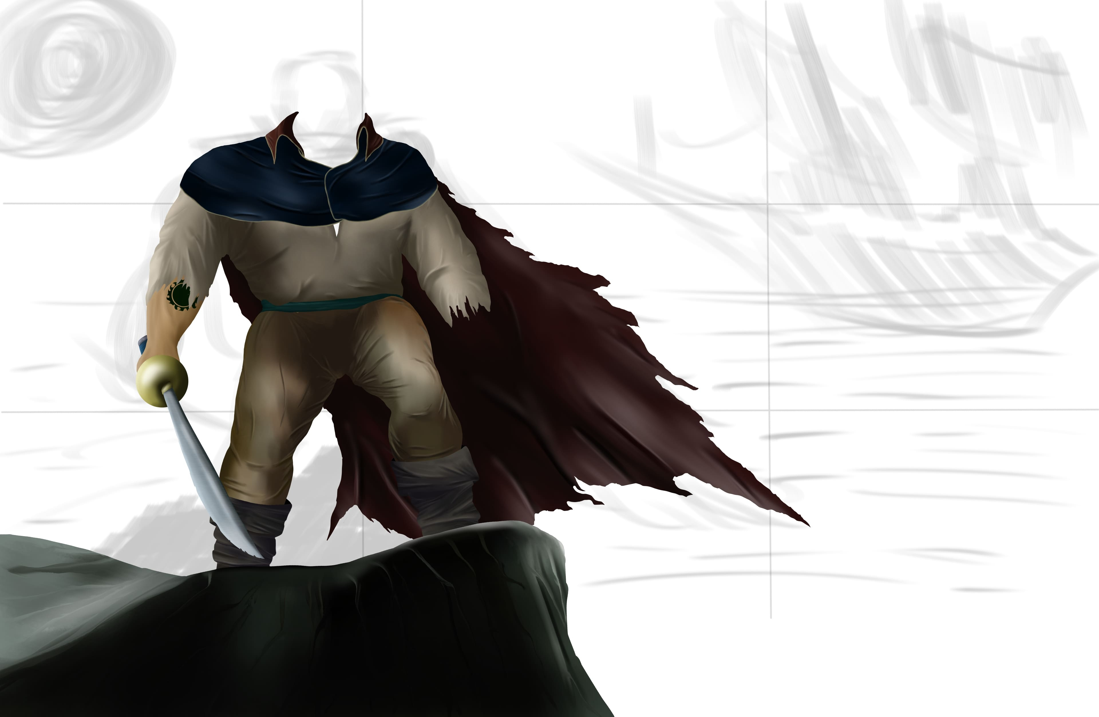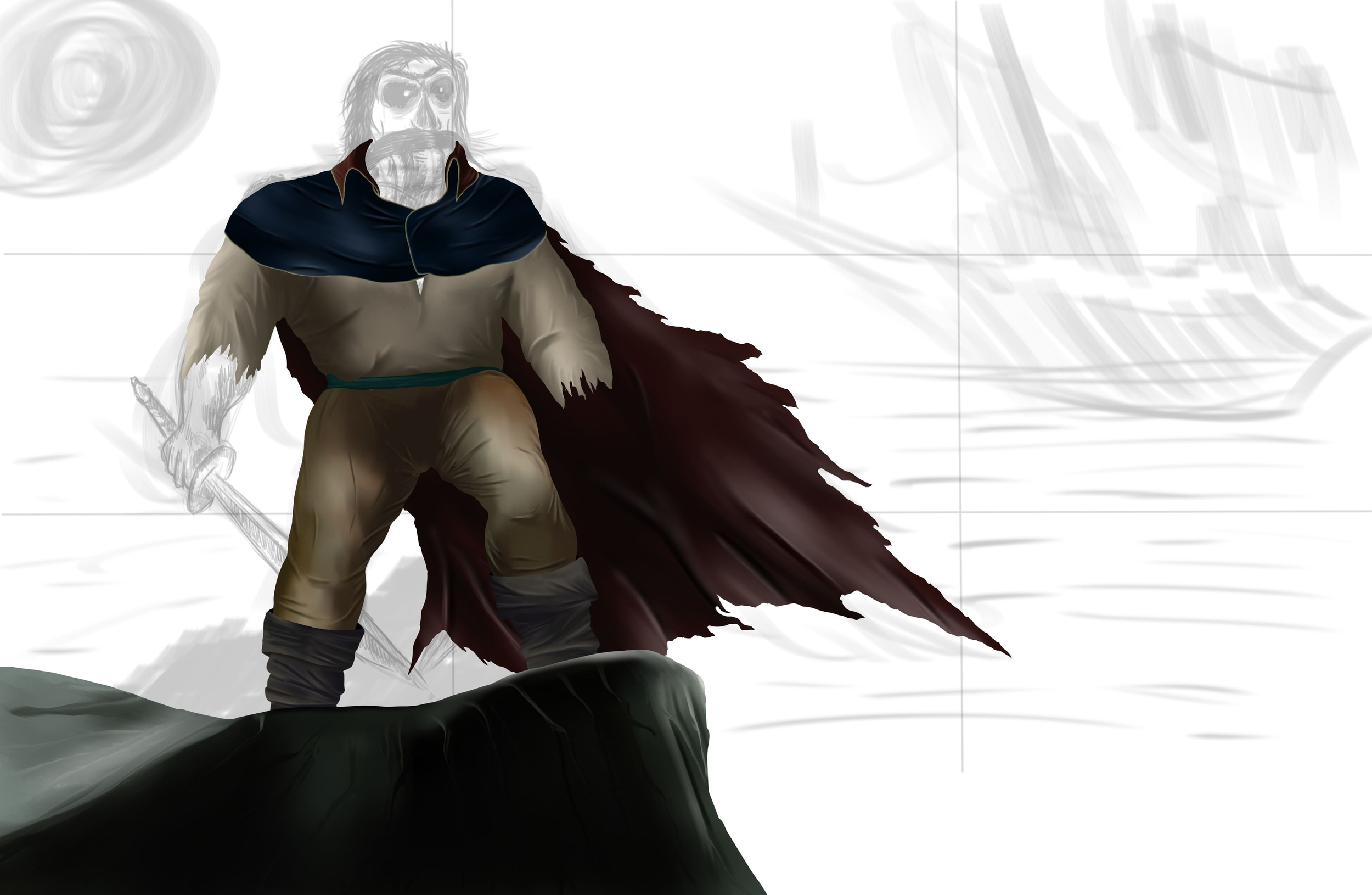 Hello ! Je profite de ce challenge pour vous présenter ma première "création". J'ai d'ordinaire pour habitude de dessiner des personnages, contextes et modèles déjà existants. J'ai souhaité prendre ce challenge comme un défi personnel : créer quelque chose, sortir de ma zone de confort en dessinant un personnage humanoïde, dans un style peu commun pour moi, en passant un peu plus le temps sur le "fond" du dessin. Ce ne fut pas facile et parfois frustrant mais je suis très content d'avoir pu participer au challenge, de l'avoir terminé et de vous proposer ma contribution. Pour le challenge, J'ai donc choisi de donner vie au capitaine du Black Bones, avec des inspirations que vous reconnaitrez peut-être : Batman & Albator (pour la posture, l'ambiance et la cape), One Piece (pour certains attributs physiques du personnage) ainsi que la légende Arthurienne (à travers l'image du rocher et de l'épée dotée de pouvoirs particuliers). Je vous poste ici les étapes de mon WIP, de l'idée de base au trait final (j'ai du compresser les images pour les faire entrer dans les contraintes de publication du forum ^^) Bonne journée :)