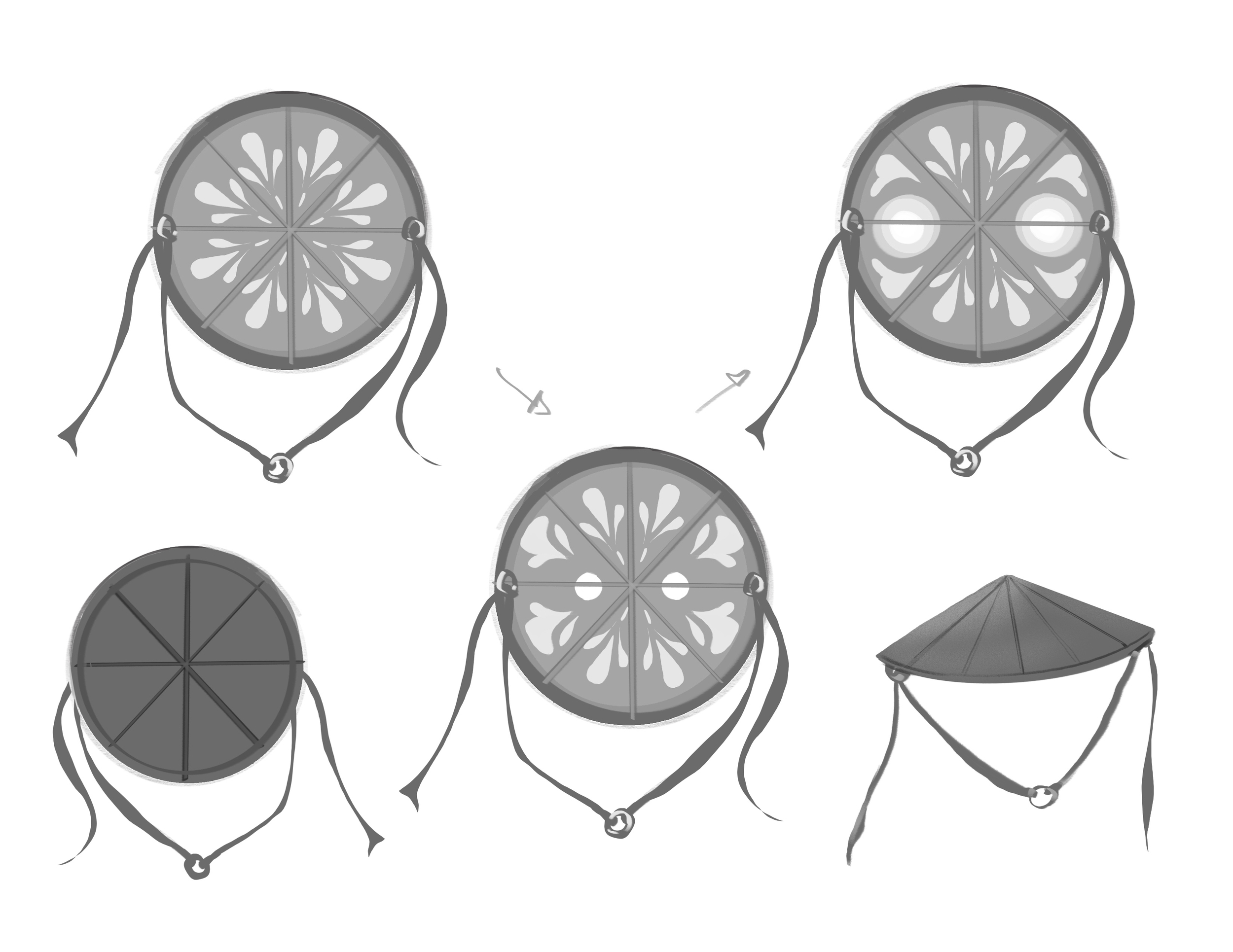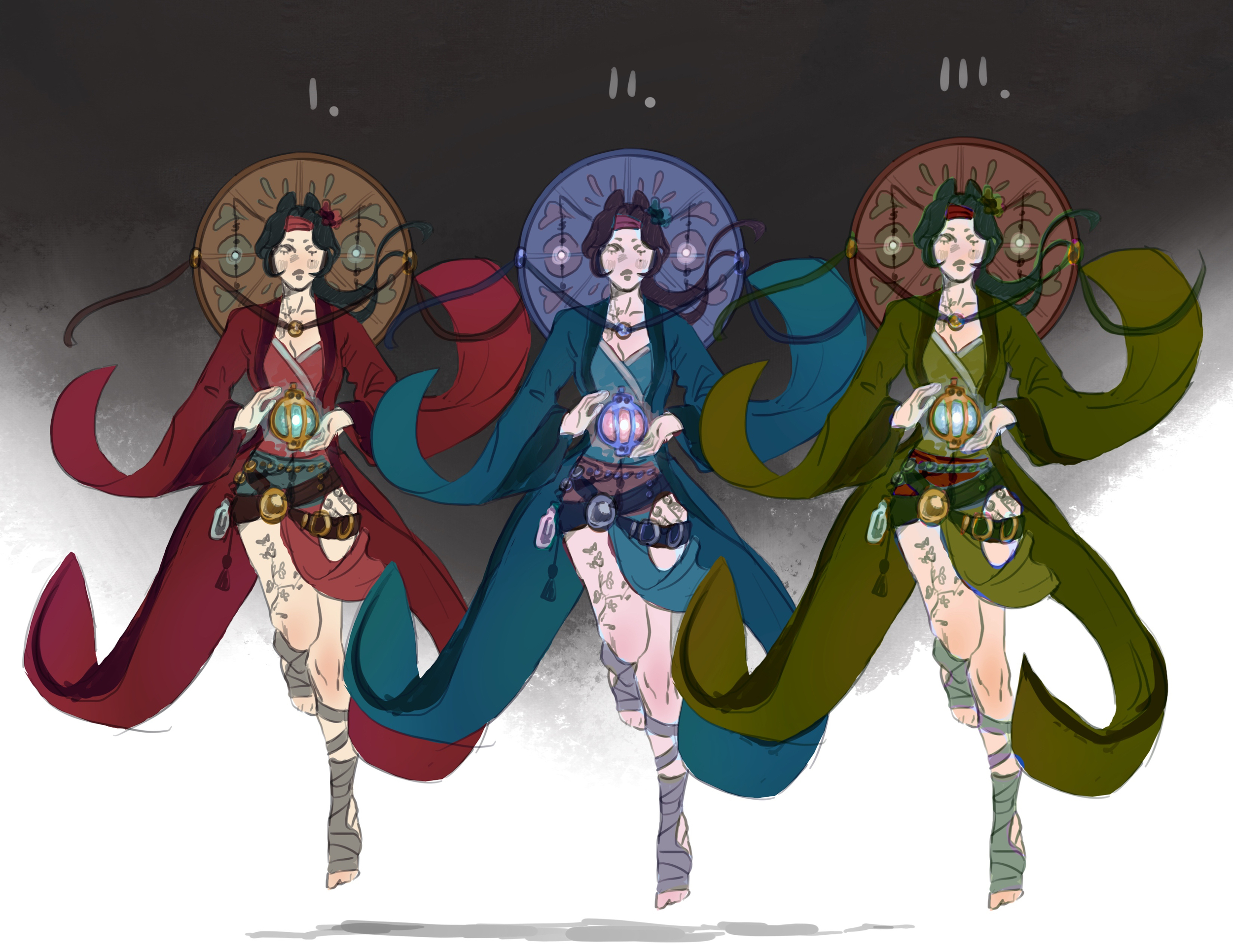 Heu….est ce que je vais finir à temp… jsp 😭 mais je vais essayer ! Donc voici l’avancé avec mes test de couleurs, dite moi votre préféré ! et le design du chapeau qui comme vous le voyer, les motif ce transforme au moment de c’est invocations pour s’aligner avec les cristaux des accessoires de ça chevelure ( jsp si c très compréhensible) -