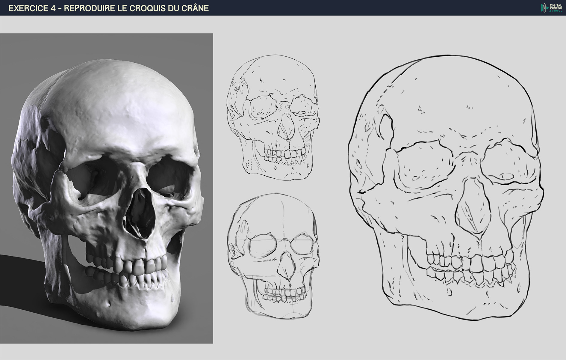 Voici mon exo N°4 1h30 environ, j'ai hésité à épaissir un peu + les tracées pour la forme global et certains endroit important.