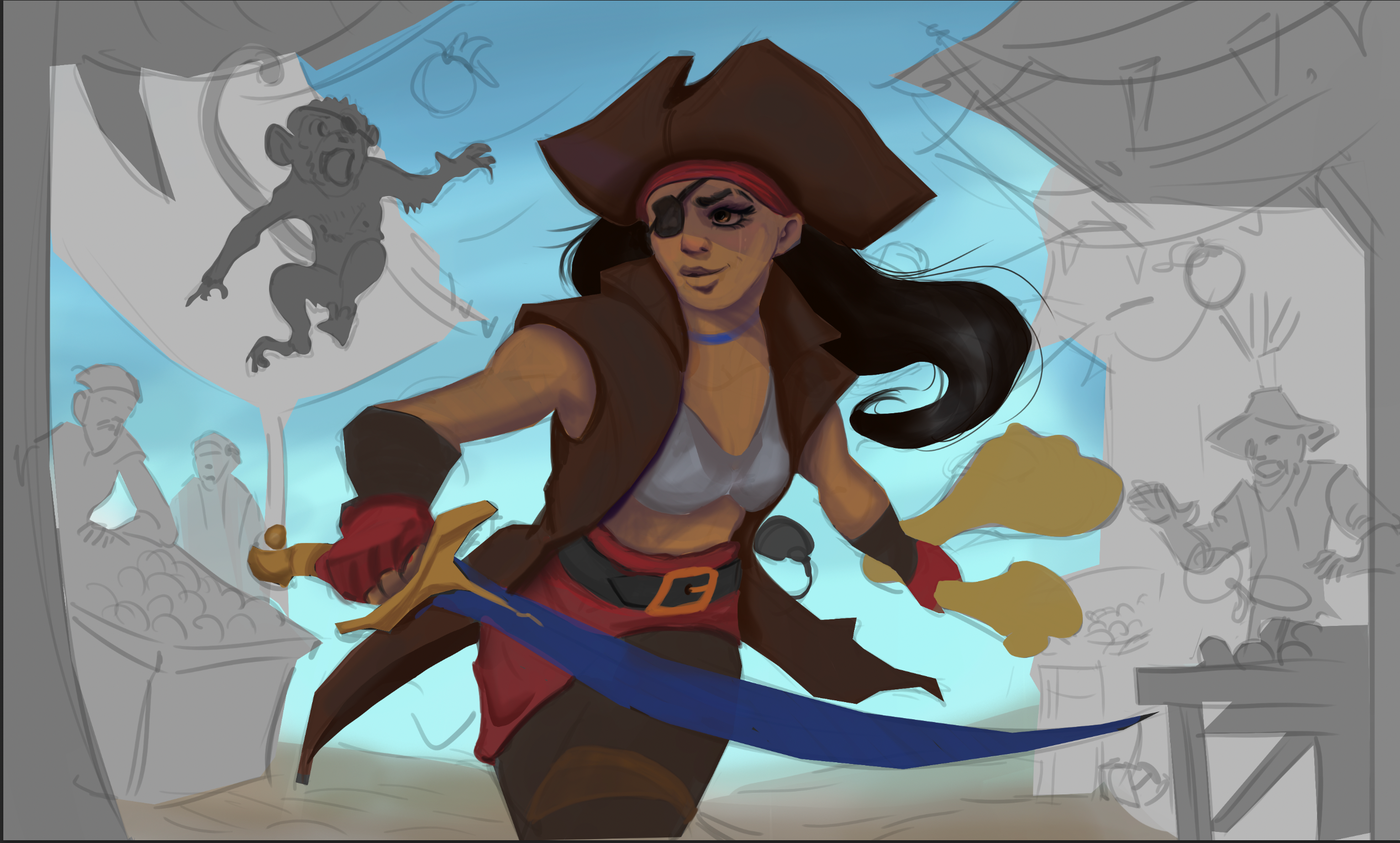 Hello, j'ai commencé il y a quelques jours seulement et j'en profite pour vous partager mon wip (j'essaye d'aller assez vite). Je suis un grand fan de l'univers et je ne peux manquer ce challenge. Je vais également préparer le décors des pirates recherchés j'ai commencé un croquis. -