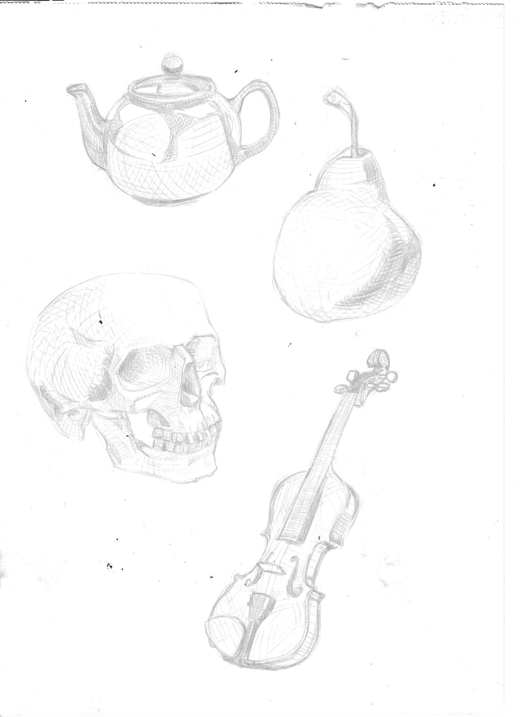 Bonjour tout le monde ! Je poste mes exercices de ce chapitre jusqu'au 6, n'hésitez pas si vous avez d'éventuelles retours 🙂 (j'ai également joint les références que j'ai utilisé pour les dessin en hachure et cross contour à la fin) Bonne journée à tous 😀