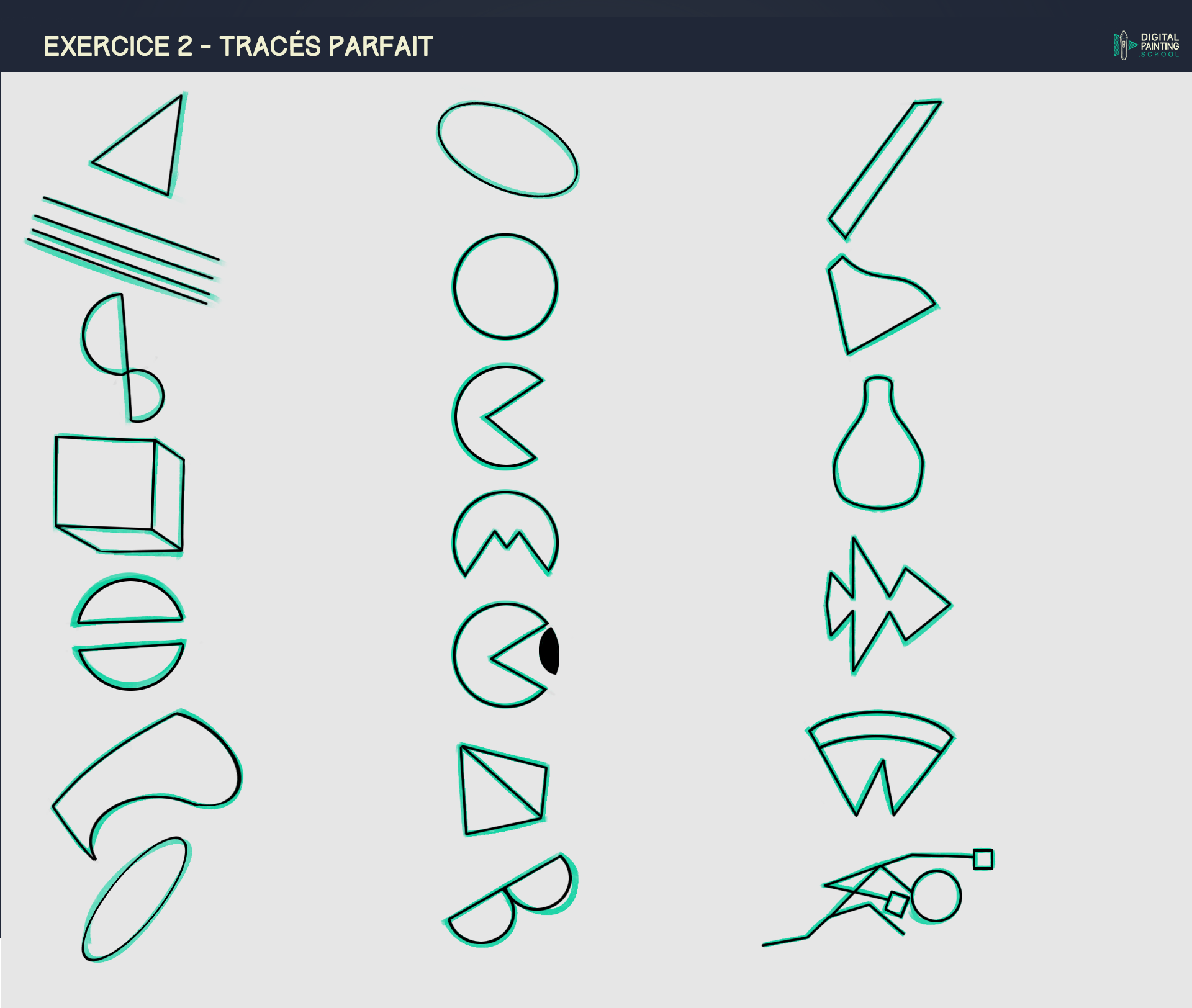 On finis l'exercice 2 avec les tracés parfaits ..... que je trouve finalement plus complexe que le brush simple ^^ -