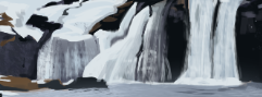 Hello ! C'est pas mal pour la montagne, y'a un petit détail qui me dérange encore derrière : Ici tu as une forme qui sort vraiment du contour global ce qui donne l'impression qu'une partie de la roche est suspendue au dessus du vide . Autre point, j'aurai un peu assombrit les cascades, n'hésites pas à ajouter un peu bleu. Pour la rose sinon j'aurai poussé encore un peu les ombres pour vraiment séparer les 2 côté lumière/ombre, en simplifiant/exagérant ca donne ca :