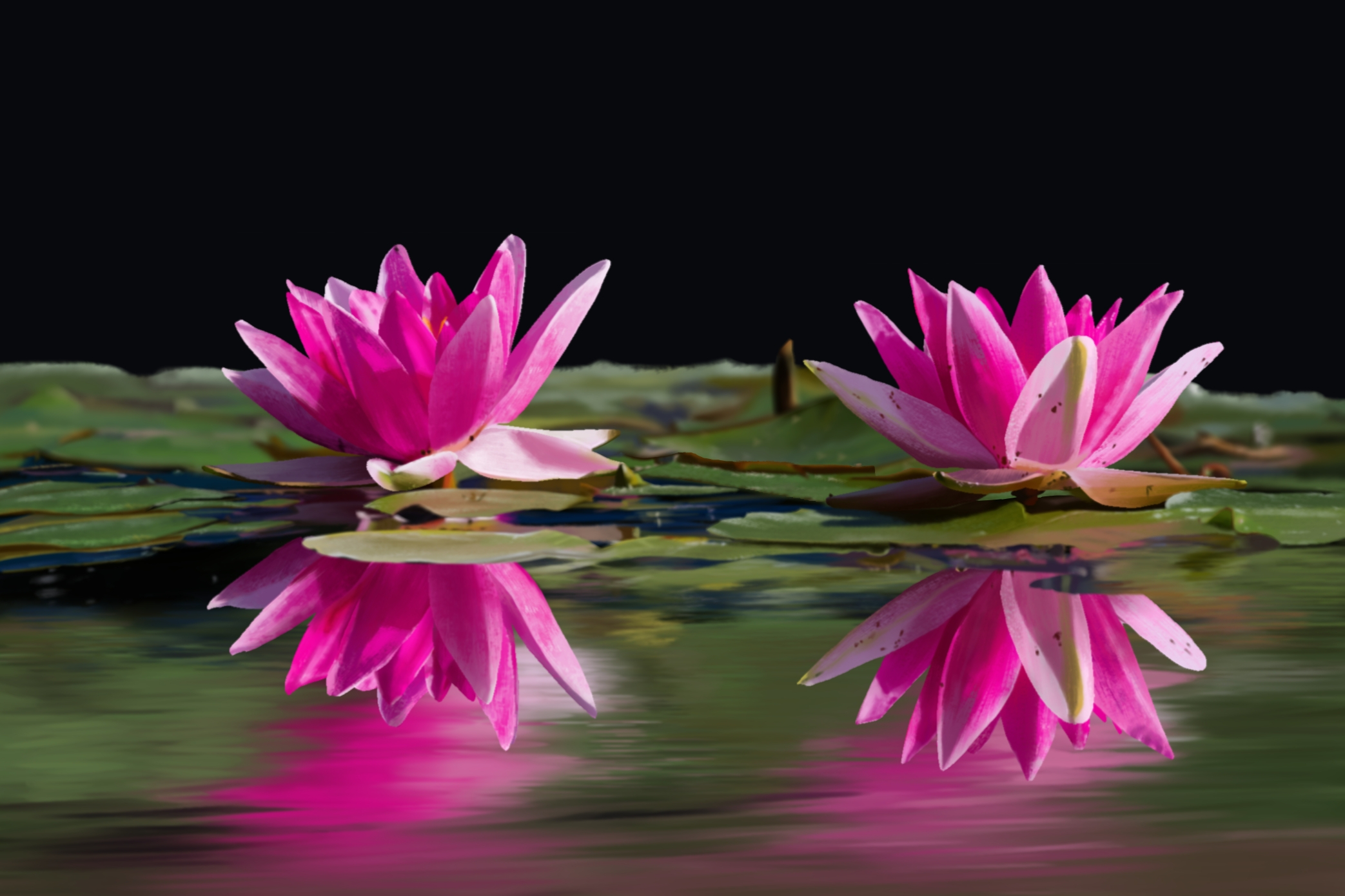 Pour les nénuphar c'"est bien ! -il manque juste un peu plus de contraste dans tes ombres sur les partie a gauche sur les deux -et tes reflet dans l'eau sont trop lumineux et saturés en couleurs tu peux venir les atténuer et leur rajouter un léger flou gaussien pour l'exo du petit monstre : tres sympas ton petit monstre ! -un petit bémol c'est qu'il est un peu trop vu de face , une vue un peu plus trois quart aurait pu lui rajouter un peu plus de volumes - tu peux aussi lui ajouter une lumière un peu plus chaude pour éviter l'effet monochromatique et tes ombres plus froide egalement idem pour ton fond qui est un peu trop désaturé en couleur pour le moment ! le noeud sur sa tete fait très plastique pour le moment due au reflet que tu lui a ajouter , et ca manque un peu d'ombre occlusion avec plus de contarste egalement contraste