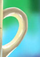 Hello ! Pas mal le poivron ! Ici j'aurai baissé un peu l'intensité du reflet bleu là j'aurai flouté un peu plus le bord et assombrit la partie occlusion (ombre de dessous) Sinon là j'aurai flouté d'avantage l'arrière du poivron. Enfin j'aurai accentué un peu les lumières blanches ici. Concernant la tasse, la première chose que je remarque c'est que ce reflet est beaucoup trop clair, c'est un reflet du dessous de la coupelle qui est dans l'ombre donc pas de raison pour que le reflet soit si clair. Sinon le fond je trouve est un peu trop clair globalement. Aussi attention à tes bords qui sont un peu tremblants Alors c'est pas toujours évident de dessiner des formes géométriques plutôt qu'organiques. (y'en a pour qui c'est l'inverse d'ailleurs ^^) Le reste c'est good. Enfin pour la branche, je pense qu'elle est un peu trop blanche dans la lumière, n'hésites pas à venir rajouter du orange/jaune en particulier au niveau de la transition ombre/lumière. Keep it up !