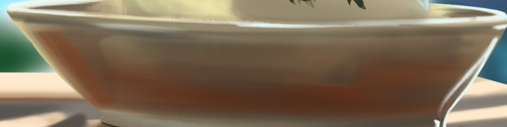 Hello ! C'est mieux pour la rose, je pense que le dessous du bouton est toujours un peu trop vert original: voilà sinon c'est top ! Non pas de souci, tant que tu post pas tout le chapitre d'un coup en une fois ^^ (c'est déjà arrivé) Vraiment sympa ce petit monstre ! Ma seule remarque concerne l'éclairage, le soleil arrière mais la lumière vient de la droite. aussi les ombres portées au sol sont un peu trop floues, mais bon c'est du chipotage, le but c'était surtout de s'amuser ici 🙂 Ensuite pour la tasse, alors moi perso je te conseil d'utiliser le croquis fourni afin de te focaliser vraiment sur la gestion du rendu, du blending des bords, l'utilisation des différents outils etc... C'est déjà pas mal de notions nouvelles à assimiler. Le croquis en plus est largement abordé dans le chapitre suivant. Ici on a quelques soucis de proportions/placement la tasse/coupelle est trop petite, la coupelle est trop ouverte (trop vue de haut) , idem pour le dessous de la coupelle. A l'inverse le haut de la tasse est bombé, comme vu de dessous. A part ca niveau couleur/rendu etc... c'est plutôt pas mal ! Ce qui me dérange le plus c'est le reflet ici qui n'est pas aligné avec le bord de la coupelle : Tu vois normalement le reflet devrait partir du bord (contact avec la table) et ensuite on a une belle symétrie. Sinon la branche c'est bien parti mais le fond en particulier en bas, me semble un peu trop clair et saturé. keep it up !