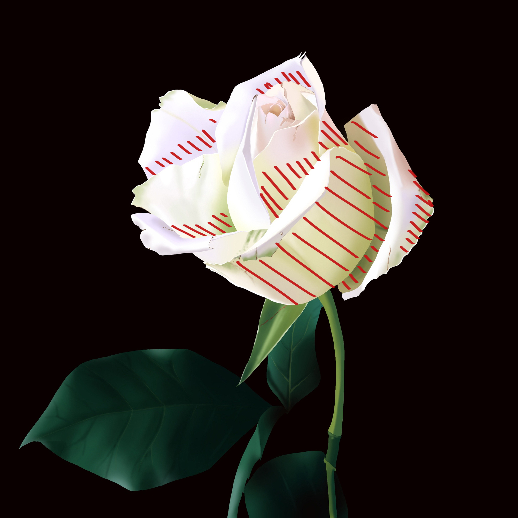 Hello ! C'est mieux, je vois encore quelques petites améliorations à faire : Ici il te manque vraiment une démarcation entre le pétale de derriere et ceux de devant, pour cela utilise un changement de valeur, il est assez net sur la référence, c'est ce qui permet vraiment de distinguer les volumes. Attention à cette zone, on devrait avoir un dégradé plus progressif, ta ligne de séparation est vraiment trop nette. attention ici il te manque l'ombre de la tige sur la droite. et ici ces morceaux de feuilles devraient être dans l'ombre. Keep it up !