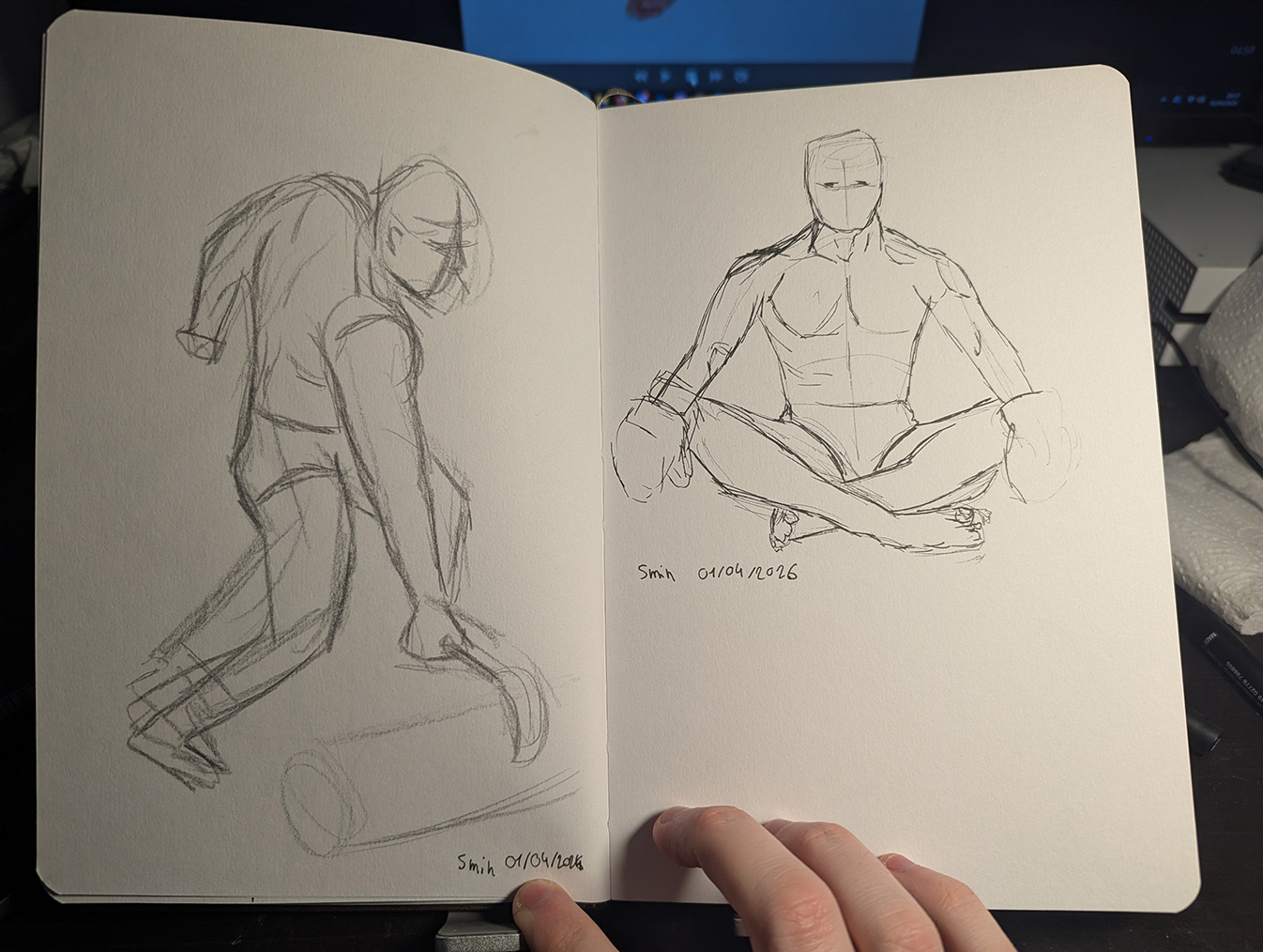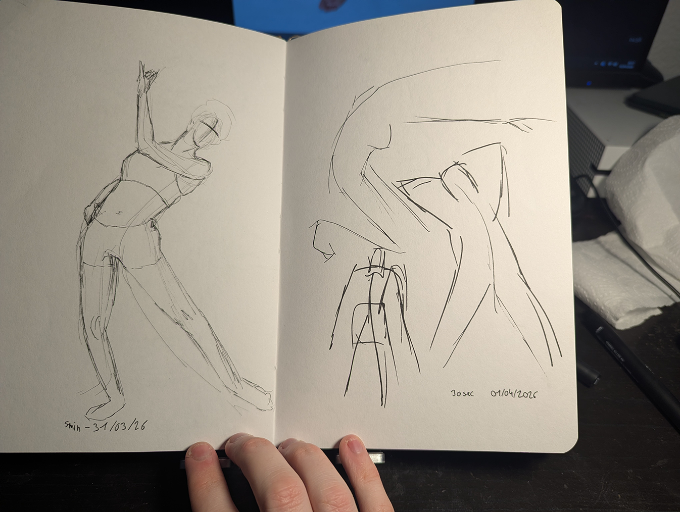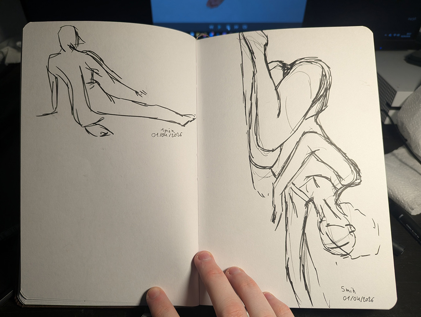 Salut ! Bon petite session de gesture, j'avais jamais fait avant j'ai fait avec le site line of action, 20 min 5 chacune, et bah je m'attendais pas à ce que ce soit aussi dur 😅 et mine de rien le temps passe suuuuper vite ! -