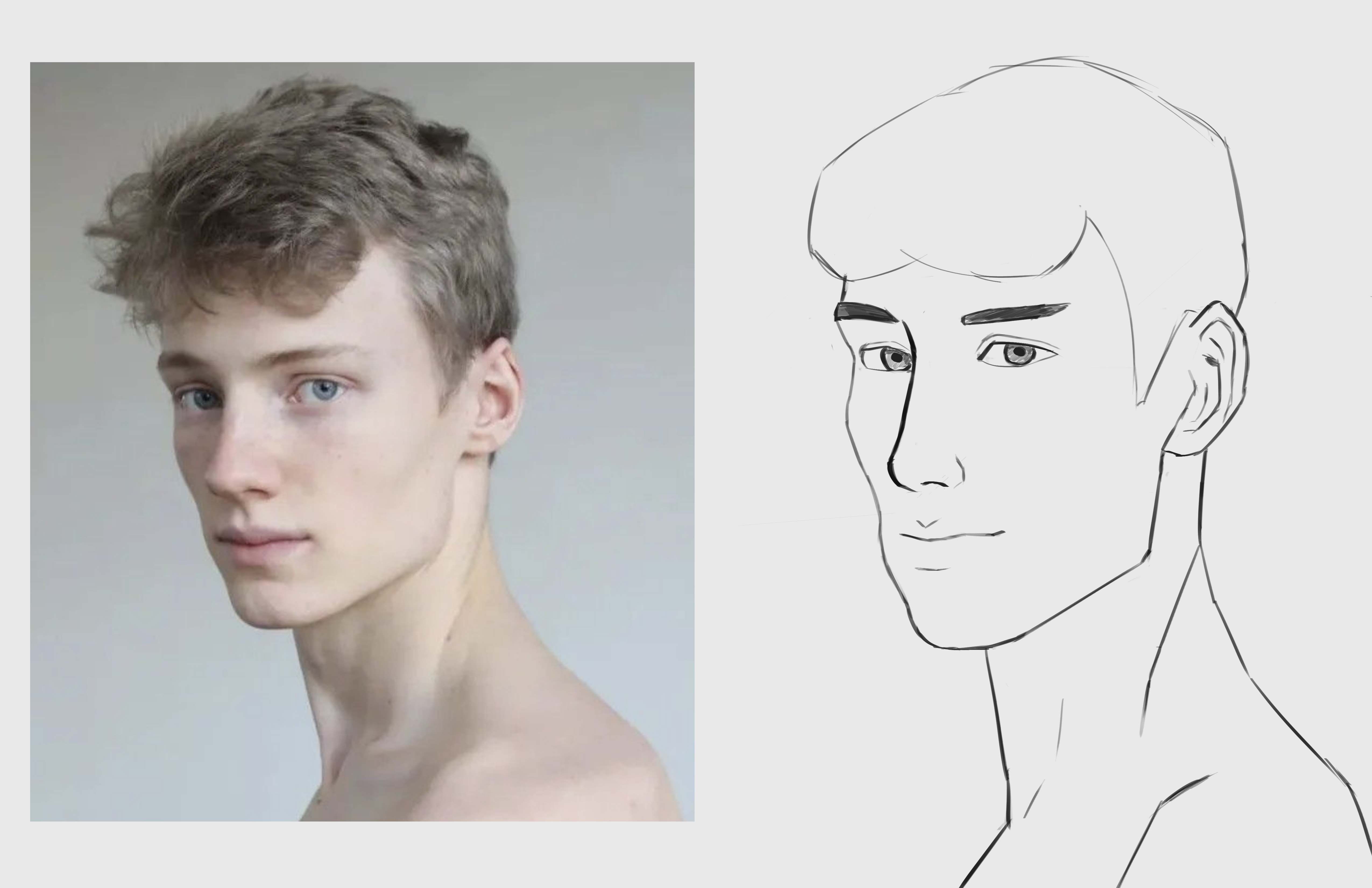 Hello! Merciiiiii à @raza, @starmanet @justice8pour vos conseils et pistes de travail. 😊 Je vais regarder tout ça et me faire un mémento de ce à quoi on doit penser pour styliser. J'ai fait ces 2 portraits avant de vous lire. Le 1er fait plus stylisé que le 2ème. Notamment car la pose se prêtait plus à exagérer les yeux et la bouche, ce qui rappelle quelques uns des conseils de @raza. Pour le 2ème mon trait habituel est revenu direct. 😁Et puis les cheveux, c'est un grand sujet aussi pour moi. J'arrive rarement à définir les formes primaires de cette zone. A noter que c'est le même personnage. Mais si......ça ne se voit pas? Bon d'accord la 2ème à pris 15 ans la pauvre. 😅 Bon y'a du taff quoi. 🫣 Bonne soirée à tous. 👋 -