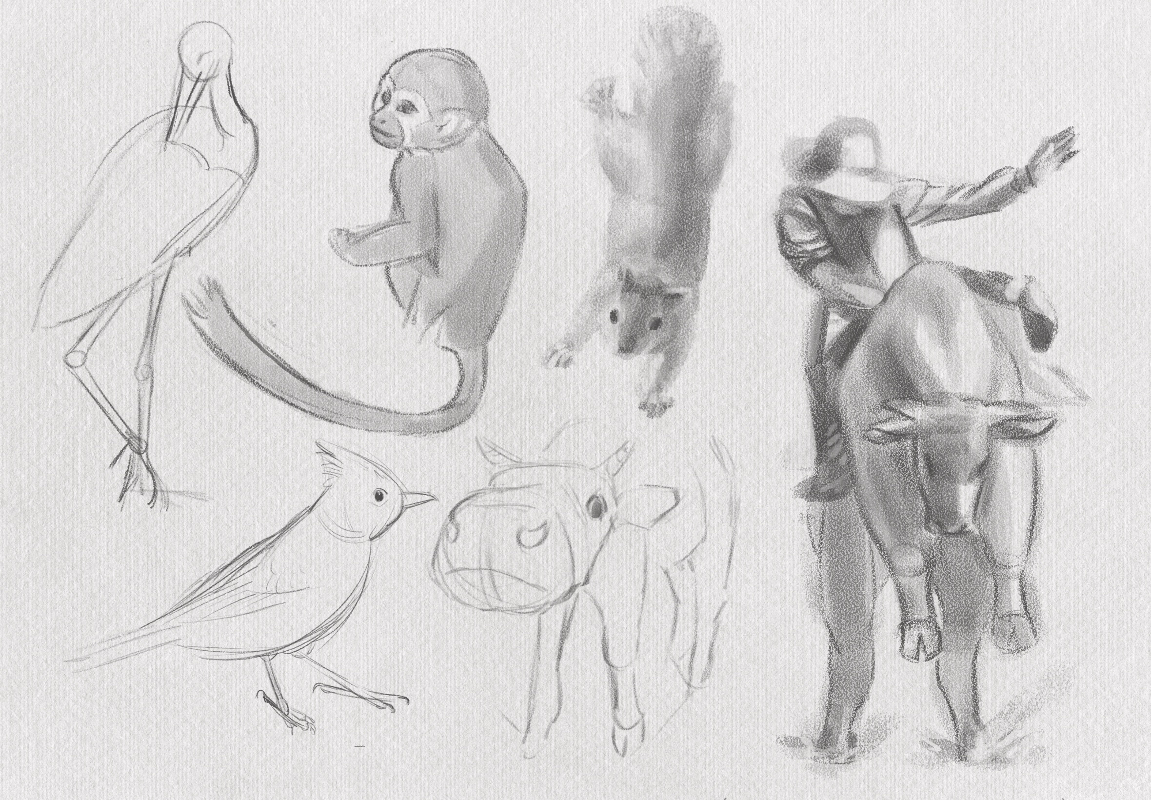 Après quelques mois d’inactivité où j’ai perdu confiance, j’ai réussi à m’y remettre en choisissant de reprendre de zéro (avec Procreate dans un premier temps pour ensuite revenir sur Photoshop plus tard). Voici donc l’exo des formes où je n’arrive pas à expliquer pourquoi mais j’ai vraiment galéré à obtenir un résultat correct par rapport à la première fois où je l’ai fait avec Photoshop sur laquelle je trouvais m’être plutôt bien débrouillé. Sûrement le temps de m’adapter au brush correctement. Et je mets aussi également l’exercice avec le personnage dans un milieu enneigé où là par contre j’ai vraiment senti commencer à réussir plus ou moins à me servir des brushs. N’hésitez pas à me dire ce que vous en pensez et je vous en remercie d’avance