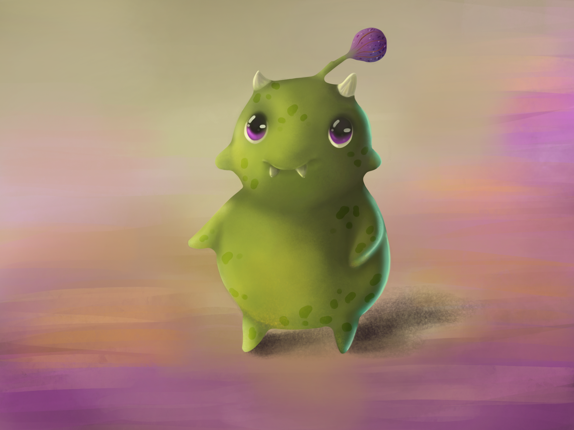 Bonjour à tous, Je viens de terminer mon exercice du monstre, même si c'était facultatif, je tenais vraiment à le faire quitte à galérer un peu car je trouve que c'est un super exercice pour mieux prendre en main la tablette, ne pas suivre les lignes de croquis mais aussi pour expérimenter tout en essayant de tenir compte des remarques et conseils que vous m'avez apporté. Ce n'est sûrement pas parfait mais je ne l'ai pas fait dans ce but, je voulais avant tout essayer de faire un projet moi-même de A à Z. J'ai eu du mal à donner du volume aux pieds, du coup j'ai mis un coup de cache misère avec l'effet de fumée 😁 Je mets deux rendus différents, j'ai essayé plus ou moins de lumière sur le bras gauche. Qu'en pensez-vous ?