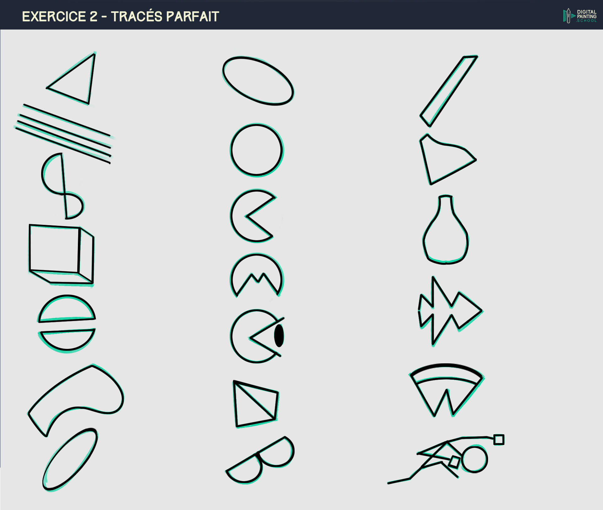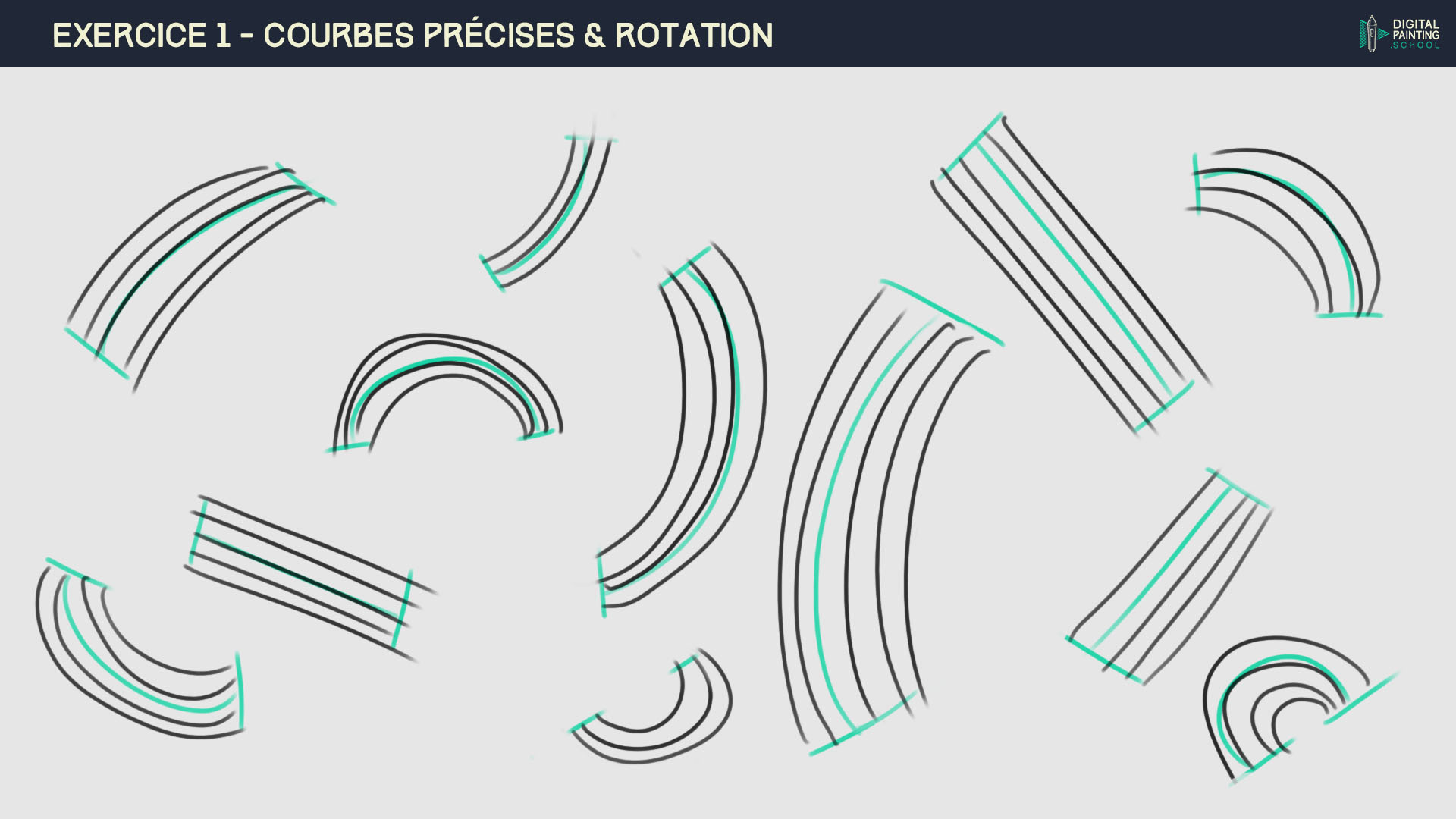 Hello, Je suis sur l'exercice Exercice 2 - Maîtriser ses coups de pinceau. Je partage mon état d'avancement après de 2 semaines de lutte à raison d'une heure par jour. Une vraie galère, une torture. Autant dire que je ne suis pas satisfait de moi. Je ne m'attendais pas à ce que la prise en main soit si difficile. J'ai fait, j'ai refait, j'ai défait. Impossible d'avoir à chaque fois un coup de gomme droit, jamais identique. Bref là, j'ai besoin de décompresser.