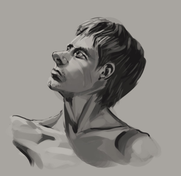 Pour le test de valeurs, tu pourrais indiquer l'origine de la lumière par une flèche. Bon brush. -