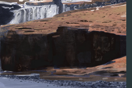 Hello @omnislash yes pour les corrections de la study de la femme qui marche c'est oke je pense 😉 Pour la montagne il y'a encore quelques éléments qui sont pas encore trop juste 😉 : -déja globalement tes couleurs pourraient être améliorer ,la roche de tes montagne en arrières en plan devrait être dans un ton bleu gris foncé et pas jaune désaturées -le bleu de ton eau est trop saturé pour l'instant également , il devrait être plus neutre et désaturé -ici sur ta falaise , la partie dans l'ombre devrait être bcp plus dans un ton froid et la partie herbe a la lumière dans un ton un peu plus chaud - -ici les falaises a côté de ton pont sont bcp trop claires pas rapport a l'original on perd un peu en lisibilité, hésite pas a venir les assombrir et les démarquer plus clairement - -pour les cascades tu peux venir rendre celle de droite un peu moins large et segmenter celle de gauche en plusieurs parties , tu peux également leur donner une teinte plus bleutée elle sont trop dans un ton violet pour le moment. -hésite pas a bien délimiter ta ligne d'horizon entre ton premier plan et ton arrière plan aussi pour plus de lisibilité -enfin cette partie la mériterais d'etre un peu simplifié dans ses valeurs et coups de brushes , tu peux quasiment partir sur un aplat de marron foncé pour la partie herbe Voila continue comme ça 😉