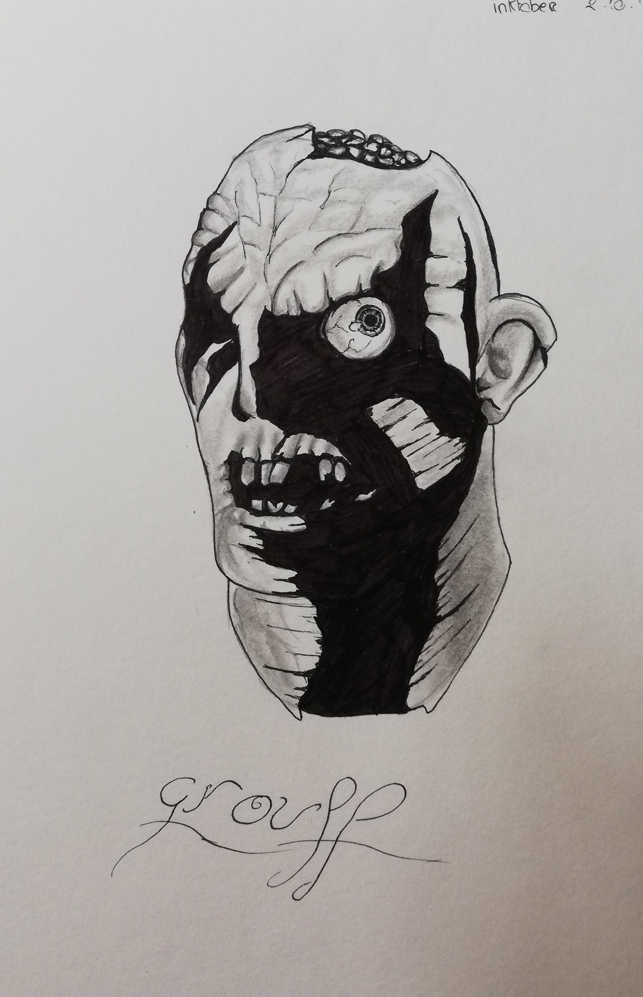 Bonsoir, j'attendais inktober depuis un moment, et c'est parti ! @Laure FavreauJ'aime bien cet effet avec le marqueur. @ThibzL'idée est bien trouvée ^^ il y a un petit coté malsain dans tout ça, je ne trouve rien de choquant les détails sont lisibles. @MistÇa rend très bien, je trouve comme @Thibz que l'anneau fait un peu tranchant.3 points