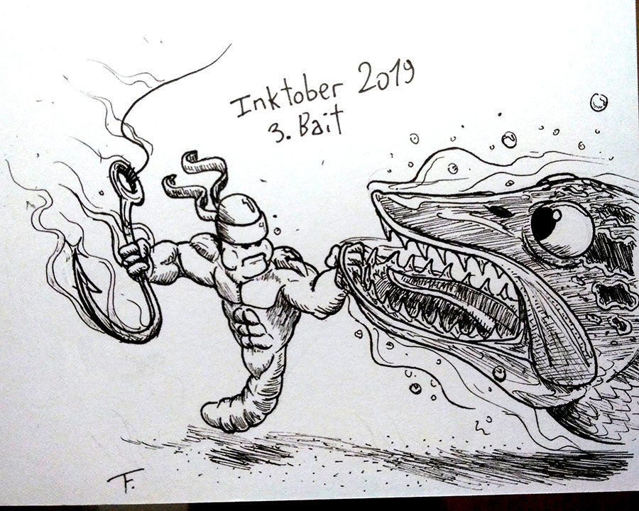 Absent pour cause de boulot , me revoilà .. mais , zero digital painting pour reprendre, j ai préféré faire en mode "inktober" ^^ fusion de Napoleon et de cthulhu Mais il est fort probable que je me le retravaille et colorise avec Krita 😉 edit ... je viens de me rendre compte que j ai oublié la critique des autres dessins... mais je crains l hernie mentale si j en fais de trop d un coup pour une reprise ... alors , grosse flemme (pour l instant) mais j ai pris le temps de les regarder , gros smack a tous😜4 points