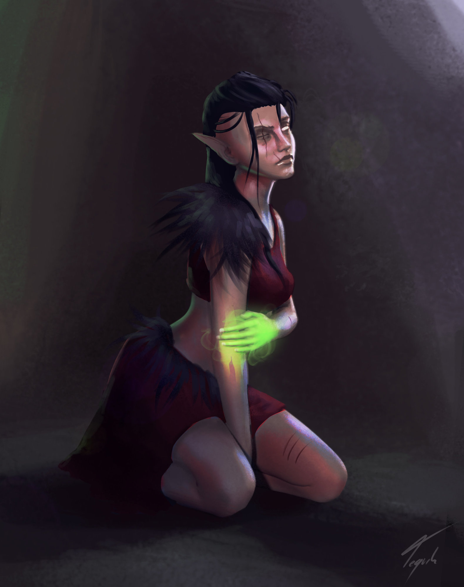 Oyé oyé ! @ycah J'ai arrêté la série au milieu de la Partie 1. J'étais mi-chaud mi-froid mais peut être qu'avec la seconde partie je serai plus intéressé. Pour revenir à ton dessin, il est marrant ^^ Peut être faire attention à la différence de line entre le perso et les vêtements @GunSlinger Très sympa cette fiole ! Attention à la perspective en haut du flacon qui me paraît peu en adéquation avec celle appliquée à l'ensemble. @Elfamosododo J'aime beaucoup l'effet de mousse/bulle c'est très bien fait Pour ma part, je suis parti sur une sorte d'elfe qui aurait perdu un combat et qui par conséquent, s'en va se heal dans un coin. Je suis parti d'une base 3D que je remanié par la suite. Et chose importante c'est que je me suis bien amusé à faire ce painting car ces derniers temps, je ressens comme un petit coup de mou, j'ai un peu moins envie du dessin et j'ai souvent cette impression de ne savoir rien faire 😞 Du coup le Inktober tombe bien car ça me force à produire tous les jours quelque chose !7 points