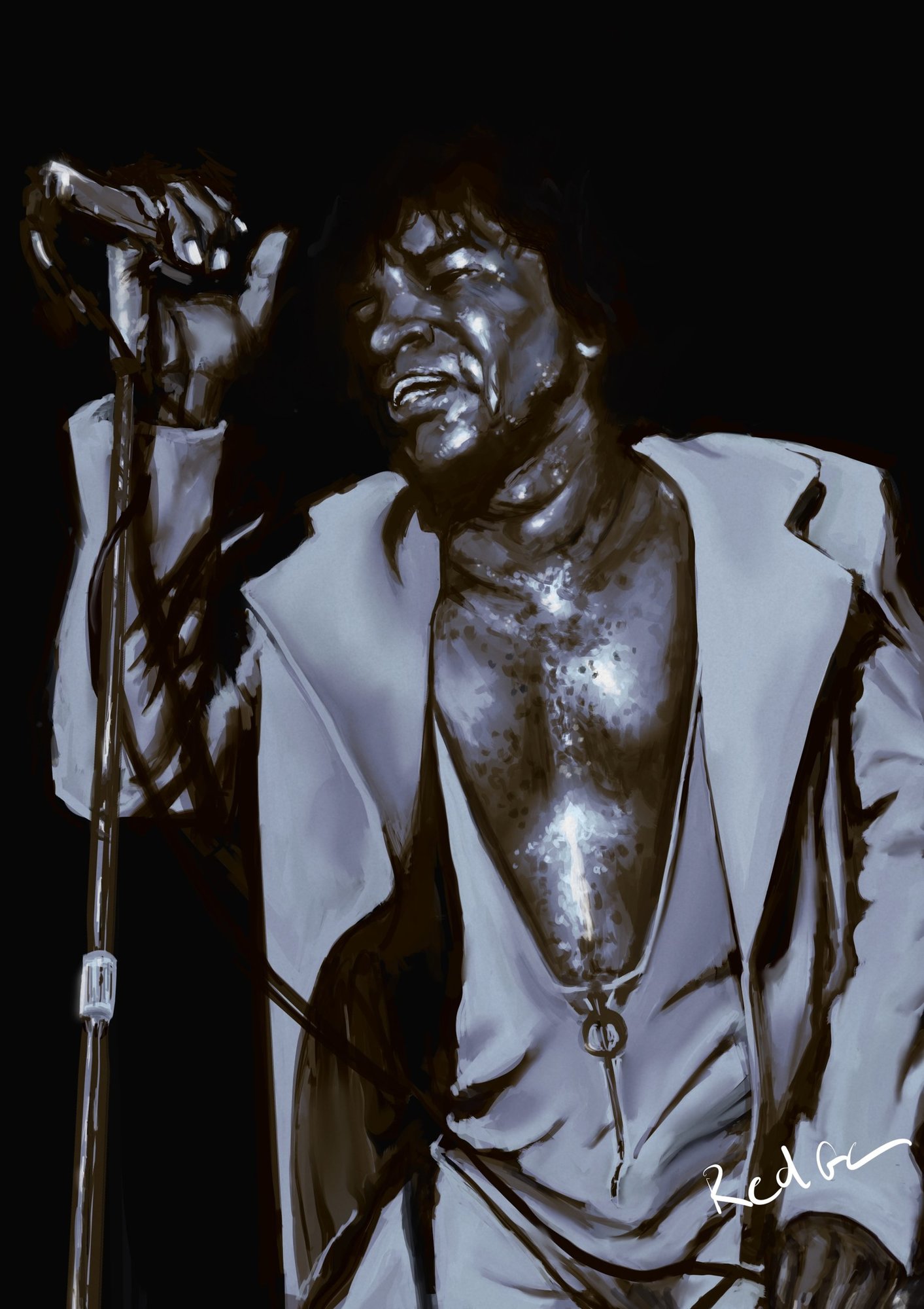 Oyé oyé ! @RedGe Tu nous régales avec ton chanteur. Fais gaffe à son oeil droit qui me semble un peu haut mais sinon gg @Yun77 Franchement sympa. Mais j'aurai peut être abaisser un peu la ligne d'horizon. @Guertty J'aime c'est sordide ^^ Pour ma part, je suis parti sur l'idée d'osciller entre la folie et la réalité. Aujourd'hui est sorti le film Joker, du coup, j'ai fais un painting du Joker 🤡7 points