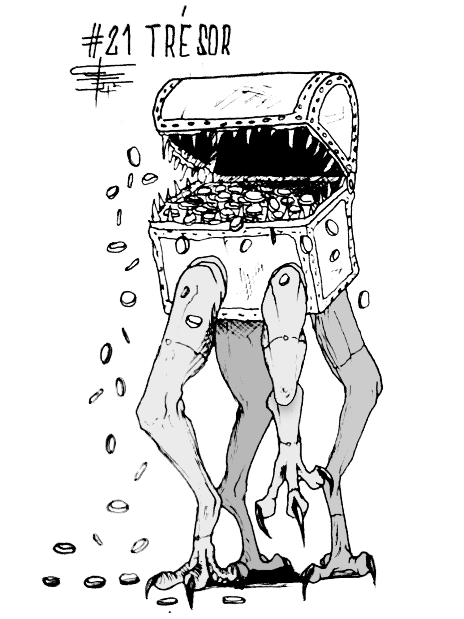 Salut à tous, On va voir donc si les dessins sont variés pour aujourd'hui 😁 @Papakai33 Décidément tu n'es jamais à cours d'humour noir ^^. @Arno Magnifique ! C'est à plein de références et ça rend bien 🙂 Pour ma part, je me suis inspiré d'un autre coffre à pattes (mais je ne sais plus dans quel jeu c'est...) mais celui est plus haut sur pattes et plus vorace 😁6 points