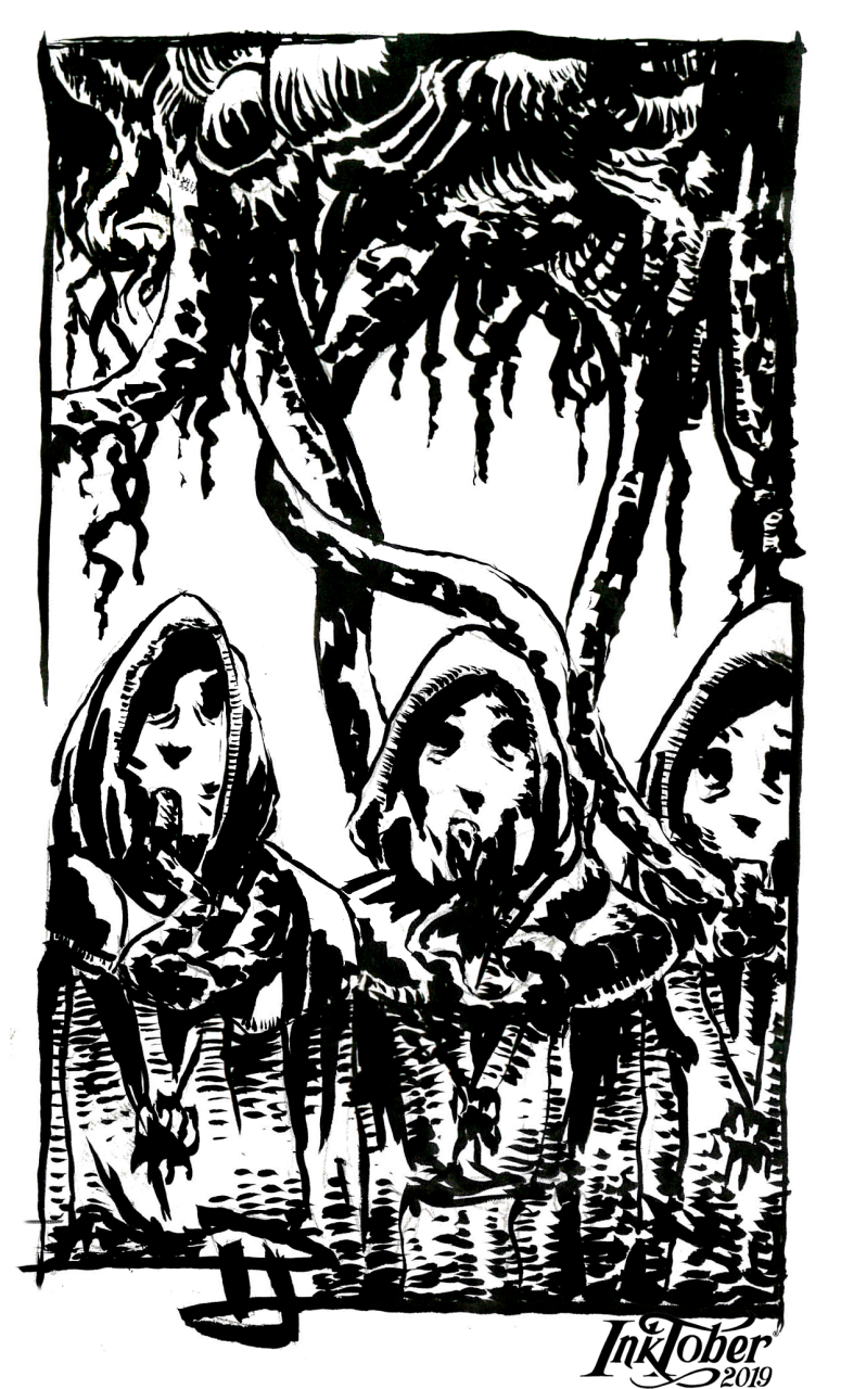 Invoquons le pouvoir des Ténèbres une fois de plus, C'est Inktober 2019, Edition spéciale Cultistes ! @Yun77 : Mignon et adorable petits personnages ^^ @Vittorio : Ces lignes c'est divin. Schuiten serait fier. J'adore l'assombrissement progressif de la compo avec barad-dur en focus. @Alien Target : C'est splendide, superbe maitrise des volumes et belle compo.1 point