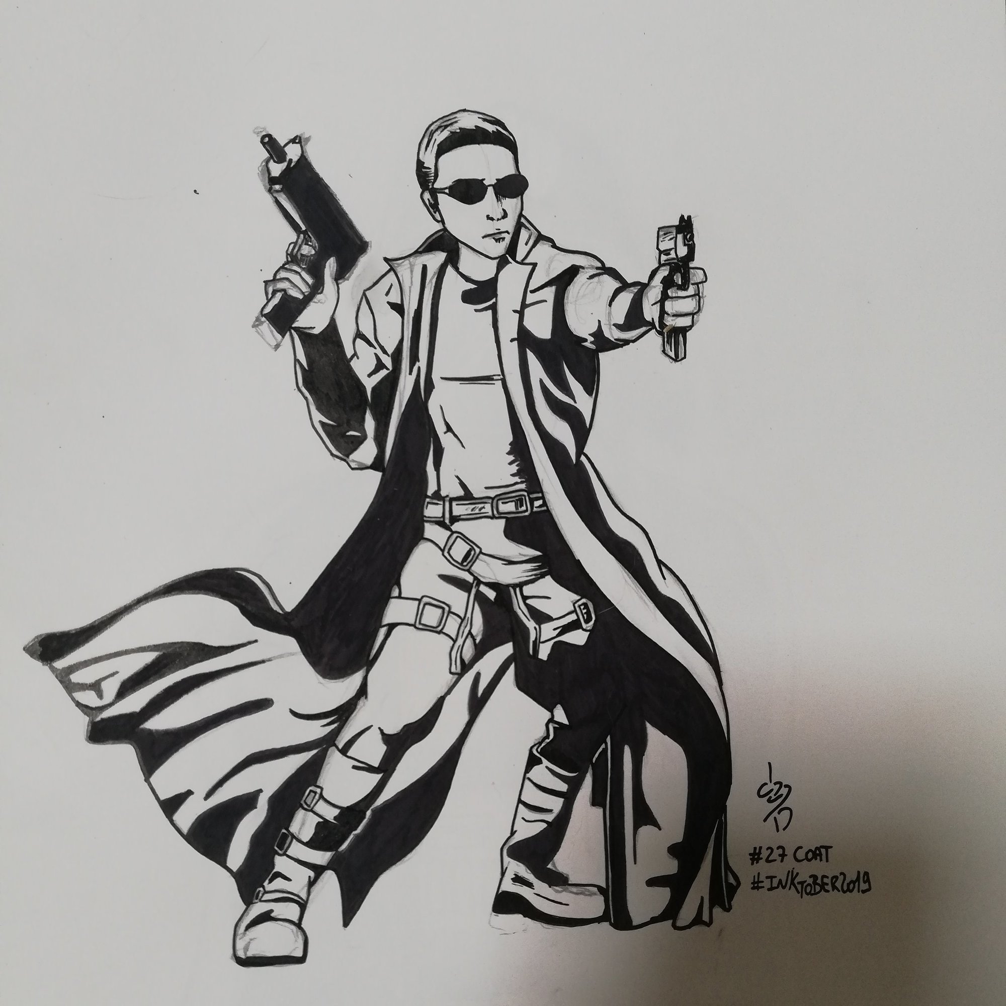 @Sow J'aime beaucoup ce style; c'est à la fois simple, efficace et original! Bravo! @RioKen974 Une technique très intéressante! Tu as su utiliser judicieusement les aplats blancs afin de faire ressortir la silhouette! @Papakai33 Bon travail au niveau de l'ombrage, surtout pour le manteau! Les valeurs de noir et blanc sont bien équilibrées; bien joué!7 points
