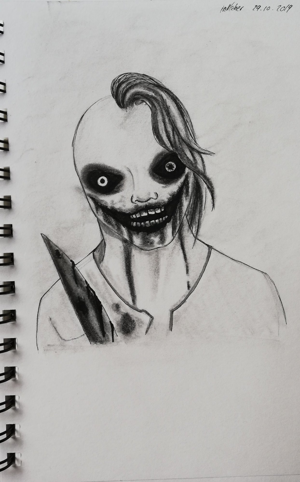 Bonjours à tous @Papakai33j aime bien ton perso. Il ne m'est pas inconnu mais je n'arrive pas à savoir où je l'ai déjà vu 🤔 @Guertty il est terriblement classe ! Même si on a mal pour lui @Ares junior haha bien fait pour lui ! Ça lui apprendra à ne pas te laisser le temps de le dessiner tant il allait trop vite hier 😁 Et voici ma participation. Un personnage d'une creepy pasta assez vieille mais toujours aussi légendaire. Je l'ai volontairement "monstrifié" davantage pour qu'il s éloigne vraiment d El humain4 points