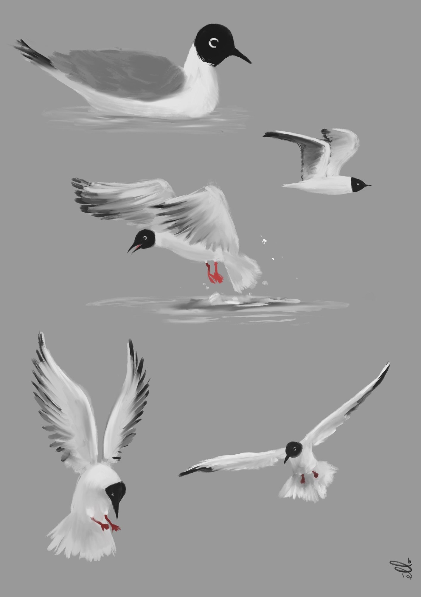 @LGV1 Je trouve que les traits des écailles du serpent sont un peu larges et que les cornes du bouc manquent de précision. Sinon je trouve que la girafe et le requins sont bien réussis ! @solakisollertia Très sympas tes croquis, il n’y a pas grand chose à redire ! @Autumn tes croquis sont propres, nets, nickel ! Pour pinailler je dirais que le museau du renard me semble un peu large, mais sinon le rendu est cool ! @mappledash j’aime beaucoup ce que tu as fait, et je trouve justement que le côté « brouillon » donne un certain charme et de la personnalité à tes croquis. Moi j’ai profité de l’exercice pour travailler sur des mouettes qui me serviront sur un autre projet. Je l’ai réalisé très rapidement mais étant donné que j’ai travaillé directement en volume sans faire de lines je ne sais pas si on peut appeler ça un croquis...?2 points