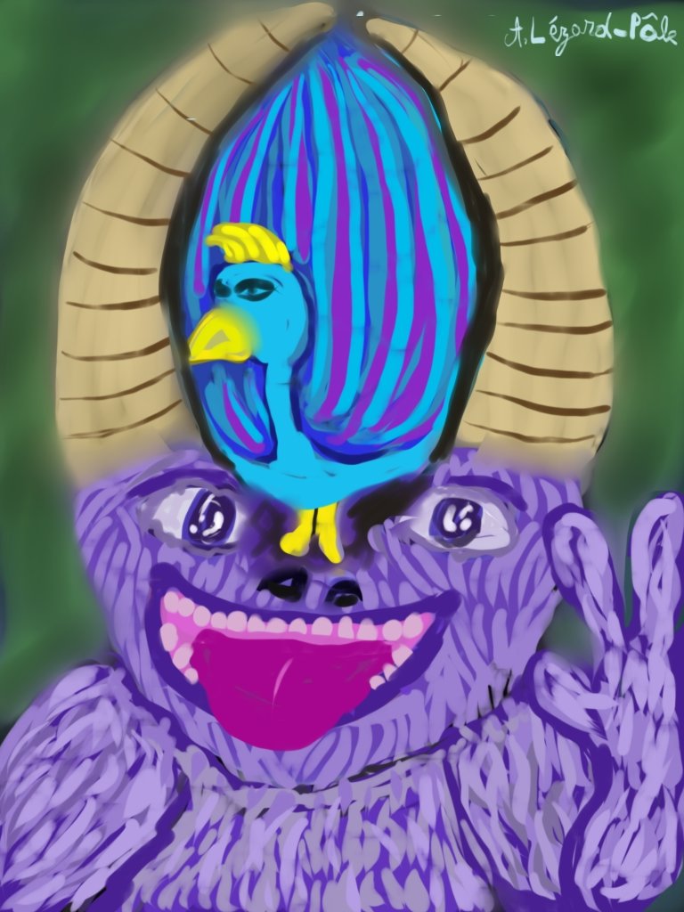 @calame je ne vois pas ton ajout de couleur pour réaliser le monochrome ? je te dis ça parce que je suis inscrite pour suivre les cours indispensable et Spartan nous donne des exemples de painting monochromatique (chapitre 6) et même Mao Mornity, et donc je pense que ce n'est pas un painting monochromatique, de plus ton fond est de blanc pur. @DavB il est bien sympa ton painting mais je pense que tu as utilisé du blanc pur ? pour tes néons, et Mao Mornity nous a dit "pas de noir et blan pur" . Voici ma participation, j'ai passé + de 8 heures dessus pour m'appliquer au maximum. C'est la première fois que je dessine un monstre sur tablette, c'est pas évident !1 point
