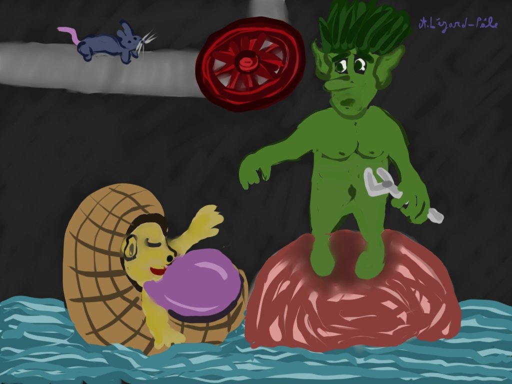 @Patate_dOuce chouettes tes deux paysages ... je dirai juste, pour l'un comme pour l'autre, d'essayer de varier un peu plus tes brushs, ou au moins leur taille ... les flocons de neige sur le premier, me semble un peu trop gros au premier plan. Et sur le deuxième, les fleurs de l'arbre ou celles qui s'envolent, pareil pour les herbes, sont trop répétitives ... @Mirowshka je ne sais que dire, c'est carrément bluffant ! Fantastique d'arriver à dessiner ce genre de sujet sans faire d'erreurs, je suis admirative ... @JujuToi aussi, le dessin me parait parfait et le rendu de la peau est très chouette aussi ! Pour ma part, après avoir raté une peinture commencée en début d'après-midi, je me suis dit qu'il fallait que je me mette à autre chose et pourquoi pas ce thème hebdomadaire ... Je suis partie sur du vert, qui me semblait être une couleur délaissée pour le moment, et voilà où j'en suis ce soir ... Je vais tacher de fignoler un peu cette sauterelle demain ...2 points