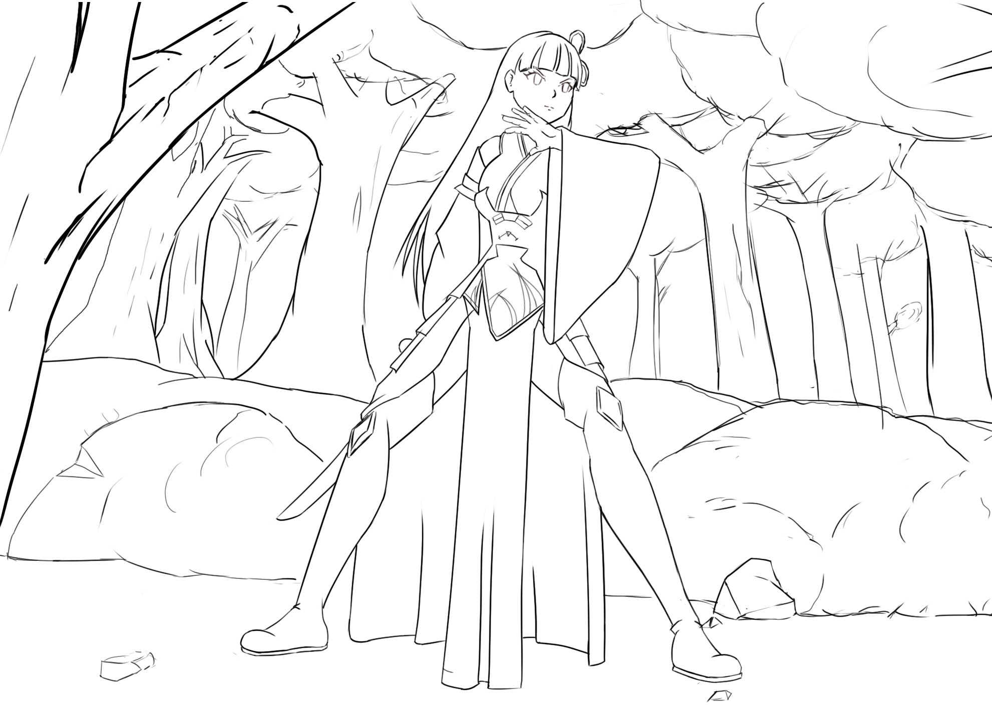 Ça en jette beaucoup plus, c'est plus dynamique ! Sois prudent pour la suite quand tu peindra la liane, a éviter qu'elle soit trop régulière 😉 Pour les valeurs, tout dépend de la lumière que tu place ici, c'est une scène d'extérieure, donc inspire toi de la lumière ambiante d'extérieur. Observe des photos qui ont la même ambiance, quitte à les placer en noir et blanc pour comprendre les valeurs.1 point