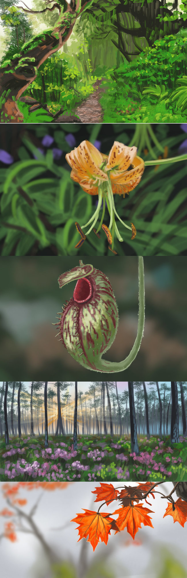 Yo les peintres ! Cette semaine on se retrouve avec un exercice qui sent bon la nature, puisque vous allez devoir travailler le thème de la végétation ! Jason Shier Cette semaine vous allez devoir nous présenter 5 réalisations différentes, croquis ou digital painting, sur les thématiques de la forêt, des plantes, et du monde végétale de manière générale. Aidez vous pour cela de références, c'est pas les exemples qui manquent. Il n'y a qu'a sortir dehors 😉 N'oubliez pas de poster vos travaux en une seule image afin d'être présent sur le récapitulatif de fin. N'oubliez pas non plus de commenter les travaux précédents. Voilà quelques exemples pour stimuler votre énergie créatrice: Andreas Rocha Julia Pishtar Alex Patel Thais Del Rey Sylvain Sarrailh Voilà pour la sélection. Bonne semaine à tous, et faites chauffer vos tablettes ! 😉2 points
