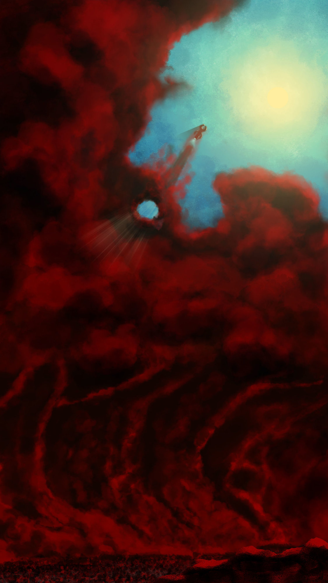 @thaddeus_bird Ouf ! J'aurai vu avec un peu moins de rouge dans tes nuages et un ciel orange, car il y a un méchant contraste avec ton ciel bleu/soleil et tes nuages. @Archange.St.Michael J'aime beaucoup ton dernier painting, surtout la forme des nuages. @TehaelBelle tornade, juste un truc. P'tre que tu aurais dû faire suivre le mouvement sur les nuages au dessus de la tornade...à voir J'ai un moment de libre et cela fait tellement longtemps que je n'ai pas fait d'exercices. Donc voila ma participation. 1 H 30 environs.2 points