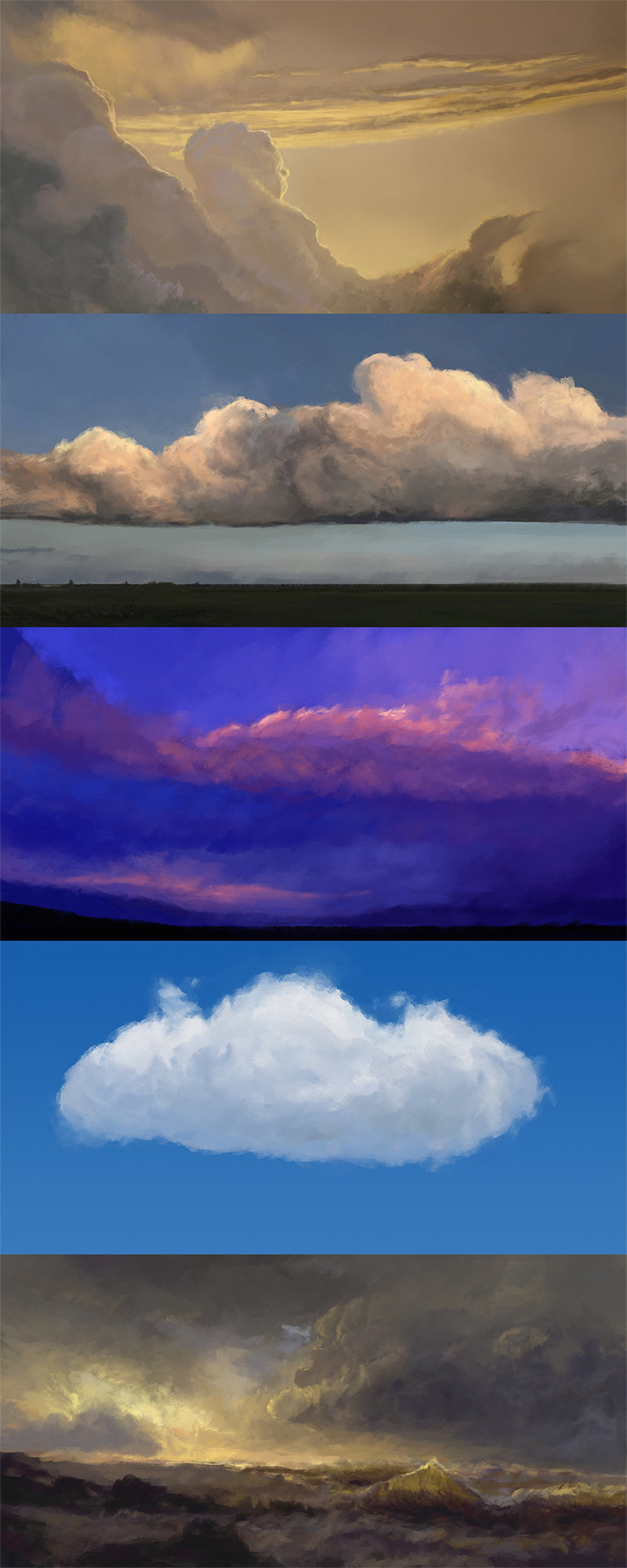 @Nerdmidtrès chouettes tes nuages, tu as bien su jouer avec les brushs et les couleurs. Bravo ! @Zamuno Pour une première tu t'es très bien débrouillé et il semblerai que tu a compris pour les volumes. @MAline Sympa ton perso, pour tes nuages, il faut se fixer une lumière, à l’occurrence ici, elle semble être en haut à droite. Imaginer ses nuages en 3D et jouer avec les ombres et lumières ◄ Allez encore un pour la route ! ►2 points
