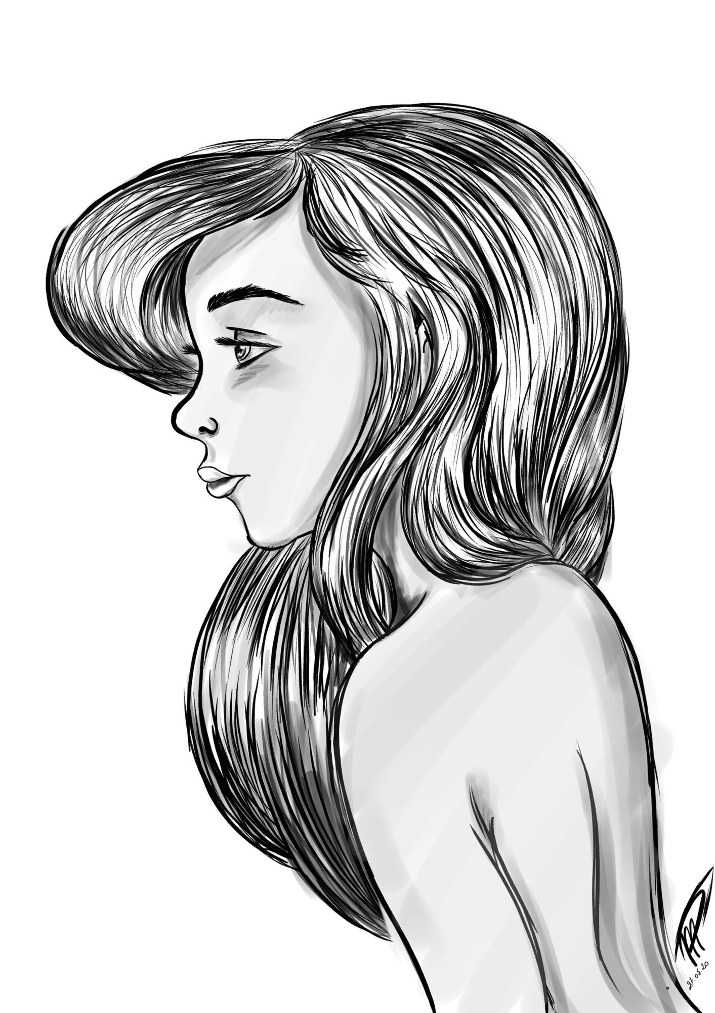 @Pingùnium Merci pour ton avis ! J'ai légèrement corrigé quelques trucs comme la partie trop sombre du visage (mais que je voulais laisser dans l'ombre), la taille de l'oreille, un peu les doigts mais je sens que j'arriverai pas à mieux pour le moment (le petit doigt est effectivement replié, et vu dans l'axe/de haut). Enfin j'ai refait la main qui tire les cheveux, ajouté un peu de couleur, puis des effets de flou pour suggérer un peu de dynamisme, des aberrations chromatiques et du grain. C'est peut être un peu trop mais j'aime bien le résultat, et faut que je passe à autre chose !2 points