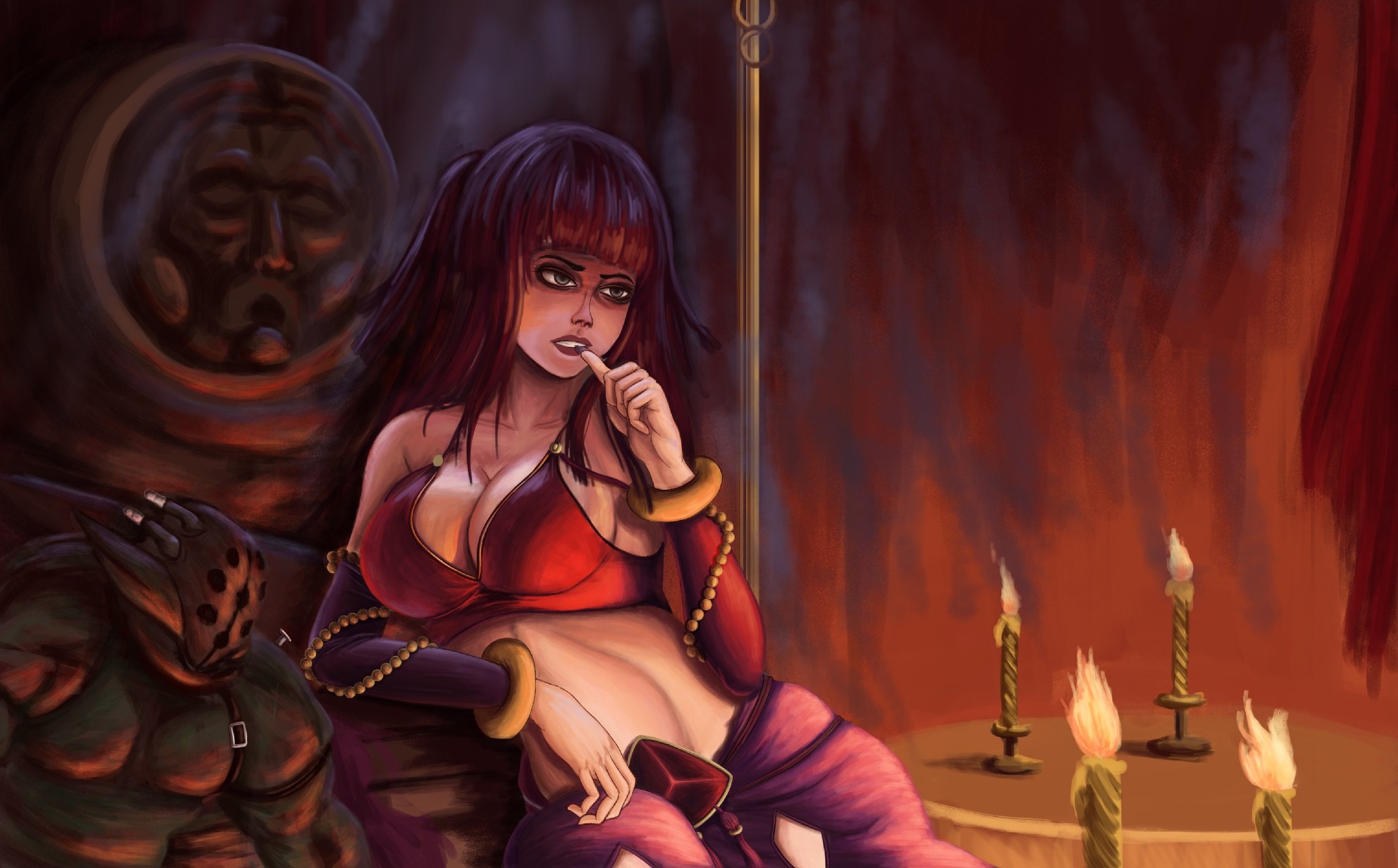 Hello tout le monde! Voilà un moment que j'hésitais, mais plus je vais peaufiner mes paintings, et plus il me sera difficile d'avoir du recule sur ce que je fais, car je m’aventure dans des détails que je commences à peine à maîtriser. C'est pourquoi je prends toute vos critiques afin de progresser! Et on commences avec deux paintings qui m'ont demandé pas mal de temps, notamment pour comprendre comment une source de lumière forte réagissait lorsqu'elle vient directement sur un personnage ou un élément. En plus des lumières, c'est la texture de certains éléments qui a rendu l'exercice assez compliqué Mon principal problème sur celui-ci vient de la couleurs qui changeant dans les zones de forte intensités, elle devrait sans doute être plus jaune dans les parties rouges .-. Le rendu du bas me plaît moyennement mais je n'ai rien trouvé de mieux pour faire comprendre l'épaisseur du tissu Je m'occuperais plus tard de la partie de droite, sans doute après avoir recadré l'image En ce qui concerne celui-là je trouve que l'ensemble fonctionne mieux même si les mains restent un challenge. Encore une fois je me concentre (peut être un peu trop?) sur le personnage avant le fond1 point
