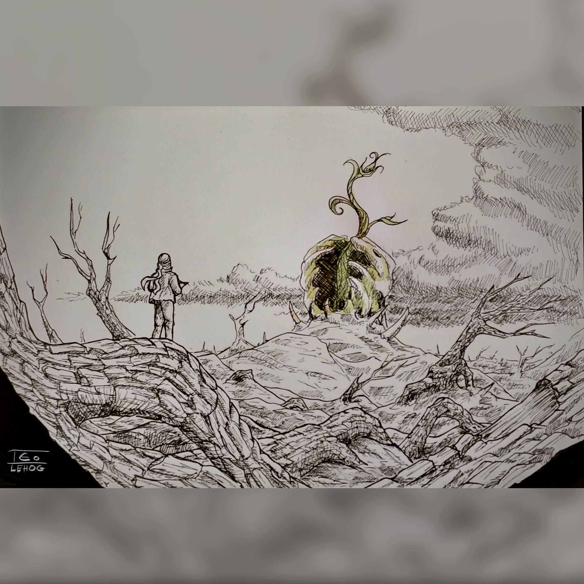 Salut tout le monde 😉 @enouilleConcept sympa (et je dis pas ca parce que je suis sur une idée similaire haha), ton dessin fonctionne bien, n'hésite pas à travailler tes transitions de valeur (sur la fleur par exemple) avec des brush plus dur (donc moins flou) je sais que c'est pas forcement intuitif, mais si t'y arrive ton rendu gagnera enormement en lisibilité 👍 @PikouzUn super travail d'encrage, j'aime beaucoup, bravo ! @franz_Aussi un encrage vraiment cool, on le reconnait bien 😉 Pour moi pas facile de trouver de l'inspiration sur ce thème pour faire un paysage ... mais j'ai fini par m'en sortir 🙂4 points