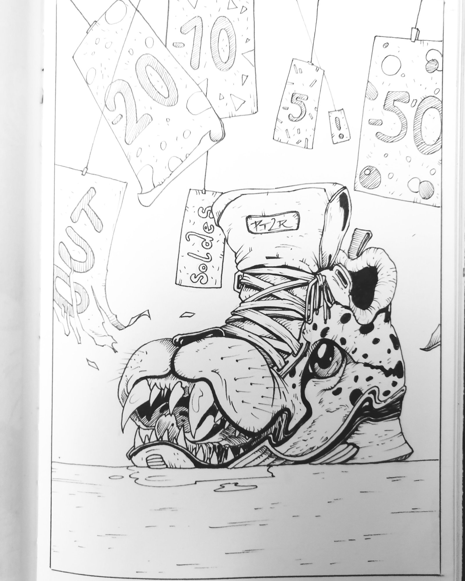 @franz_ superbe compo. J'aurais juste vu les chaussures du gars les talons un peu plus bas car on a une légère impression qu'il est sur la pointe des pieds. Mais je chipote, très beau boulot! @Teo Lehog je ne sais pas comment ces chaussures sont arrivées là mais c'est top ! Pour approfondir l'histoire j'aurais placé une chaussure féminine au fond 😉 @Jeepy scène mythique des petits pas de danse avec le pain très bien retranscrite. C'est superbe ! Moi je suis parti sur un godillot avec à l’intérieur(euh...presque) le roi des curieux....6 points