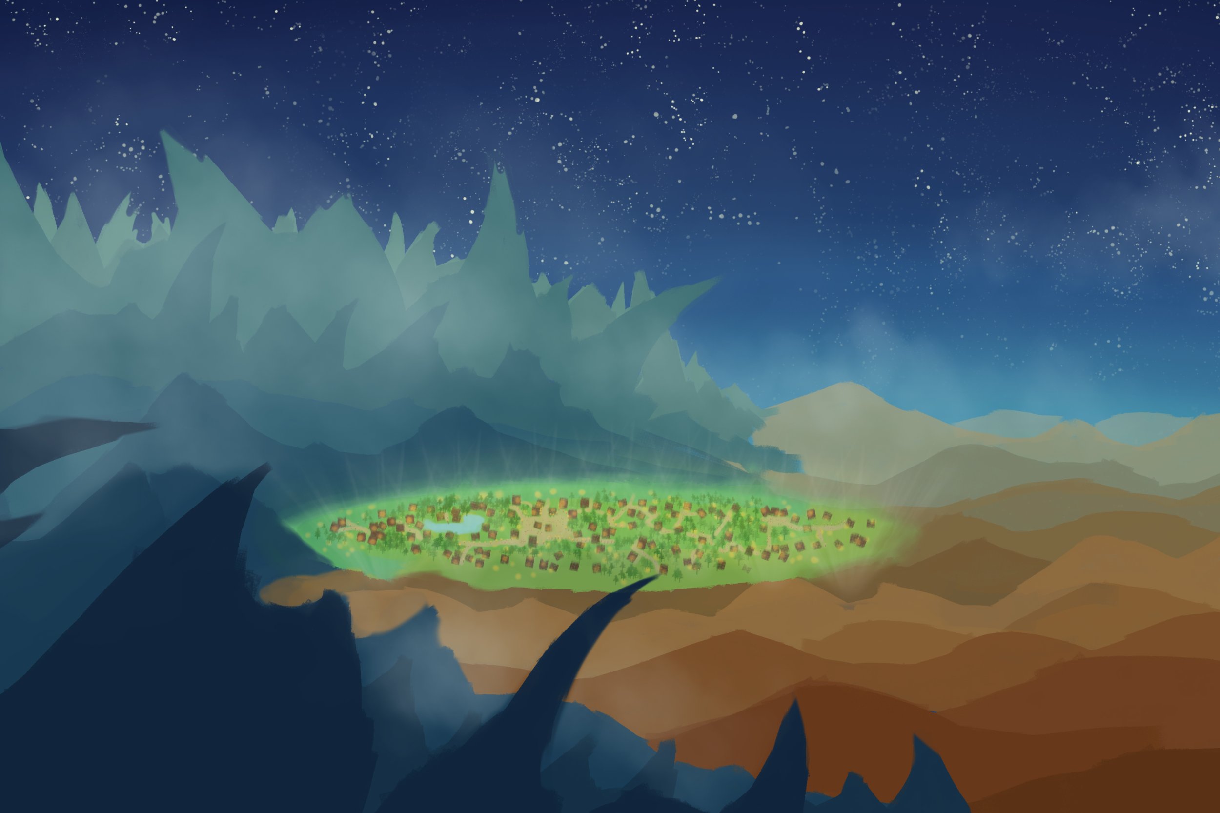 @Zamuno ta perspective est vraiment intéressante, ainsi que les couleurs choisies qui permettent à l'oeil de vraiment délimiter chaque zone. Et j'aime bien le petit halo que tu as mis au-dessus de la ville. @blastalx J'ai apprécie tes plantes qui étaient reconnaissables, dommage qu'il y en ai pas eu plus, et puis, j'aurais adoré les voir en "3D" ! Est-ce qu'elles sont sous de la glace ? @Neiraton illustration est très japonisante avec une atmosphère douce (peut-être un peu trop douce par rapport au sujet ?). J'aime beaucoup tes montagnes et la forme des plaines !!! Voici mon propre projet, sur lequel j'ai passé plusieurs heures au cours des deux derniers jours. Je l'espère lisible et fidèle au sujet. En tout cas, ça m'a bien plu ! Je recommencerais volontiers ! Merci @Ravenn Bectitpour le sujet :))2 points