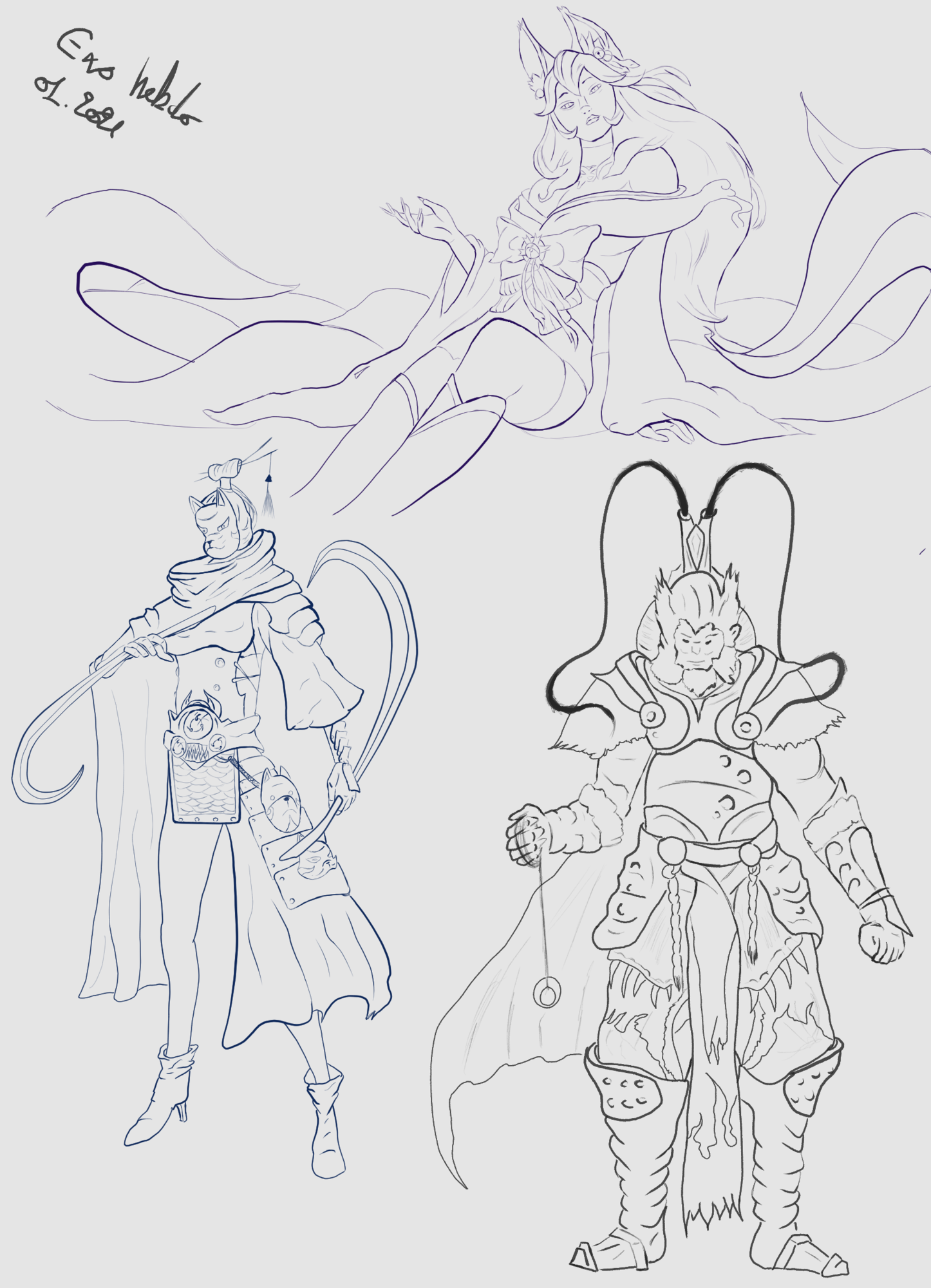Hello! Voila mon illustration de départ. J'en suis à peine à 50% du taff je dirais. Beaucoup beaucoup de travail d'éclairage de rendu de matière ect m'attendraient. Mais je vais y passer un temps fou. Je trouve que l'on a tout de même un bon exemple de mon niveau actuel 🙂 Il y a surement des soucis d'anatomie, même si c'est pas trop mal je pense. Je me dis que je pourrais même m'essayer à le reprendre en hyper réalisme type baroque à la fin de la partie 3 (j'adore Le caravage, ça doit un peu se sentir par l'éclairage clair obscure 🙂 ). Mais je trouve de travailler le line art super cool aussi (je me suis inspirée du jeu Hadès).2 points