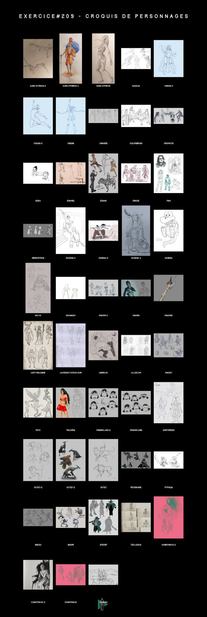 Bon ca me fait un pretexte pour etudier, le design de base est de Svetoslav Petrov @Cromatid Oublie pas de mettre les timings si c'est du modele vivant ca aide a contextualiser si faut faire des remarque 😜 Le seul truc a chipoter, c'est juste d'eviter quelques angle un peu trop pointus et de pas trop multiplier les traits sur une meme ligne. @SKARR T'as bien recupéré les dynamiques j'ai l'impression. Ce que j'peux te recommander perso, c'est de prendre un seul de tes persos et d'en faire du dessin itératif, avec les gestures des autres par ex, pour que tu t'entraine a conserver les éléments clé et les remettre dans n'importe quelle autre forme <: @Chesis Clean af coté ligne et rendu. Attention a deux trucs spécifiques : y'a un manque de persp dans ce que tu dessines et j'ai un peu du mal a comprendre comment ca tourne coté volume. L'autre c'est les mains pieds et visages, les tetes ont l'air d'avoir des tailles tres variables et les mains/pieds manquent de structure et intention (ou exagération, enfin le ressenti que donne un peu la rotoscopie).2 points